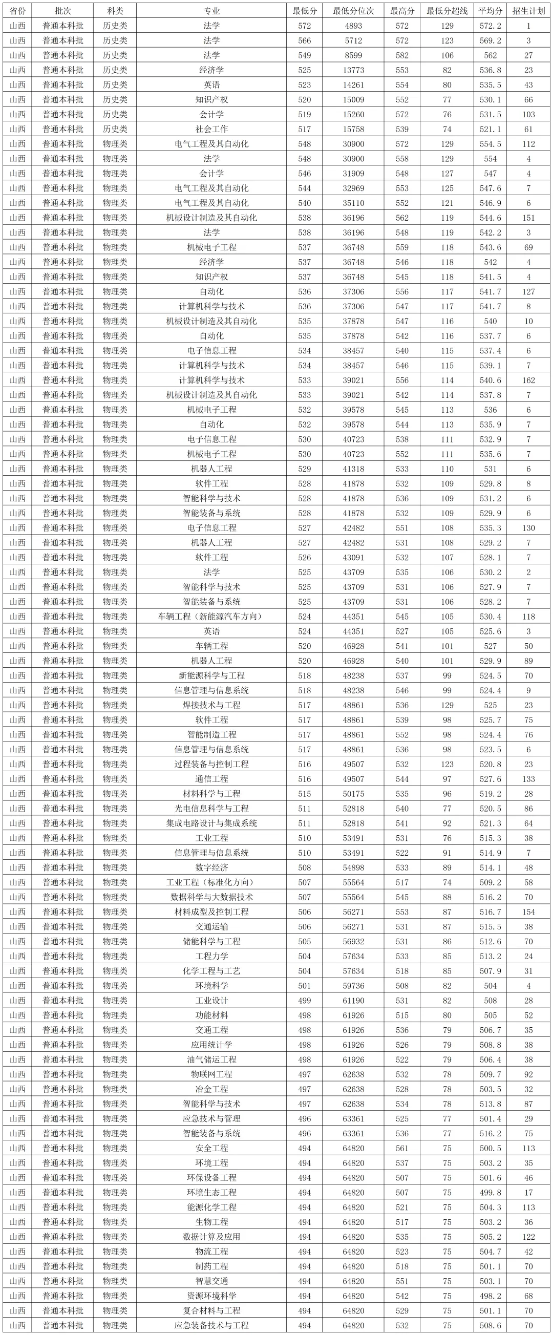 太原科技大学2025年在山西本科批物理类录取分数线较高的专业 :电气工程及其自动化548分、法学548分、会计学546分、电气工程及其自动化544分、电气工程及其自动化540分,最低494分,最低分位次64820.