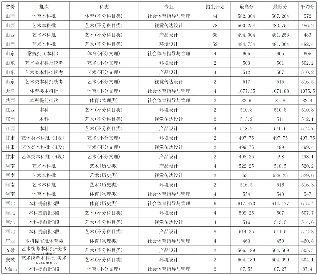 太原科技大学2025年艺术、体育类在各省各专业录取分数线