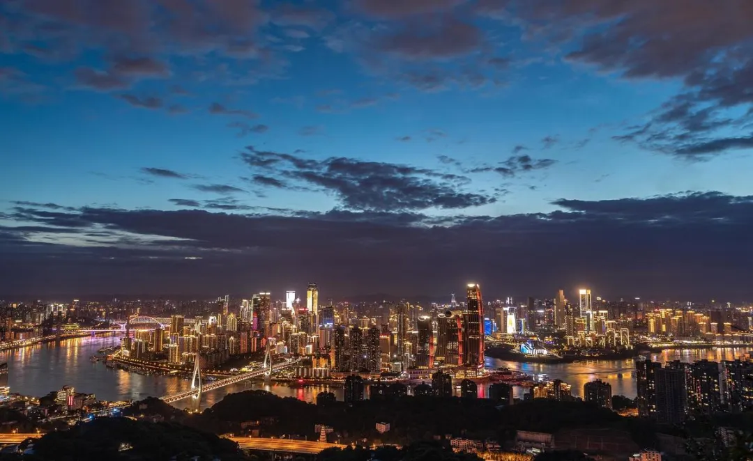 重庆的夜景跟其他城市完全不在一个量级,不是因为灯光多华丽,是因为山的高差把整个城市的灯光拉成了一幅立体画卷,你站在南山一棵树观景台往下看,两江交汇处的高楼灯光层层叠叠铺开,近处的建筑密集明亮,远处的灯光渐渐消失在山体的黑暗里,这种纵深感和层次感是平原城市永远做不出来的,因为它需要地形的配合,需要山的起伏来拉开空间。