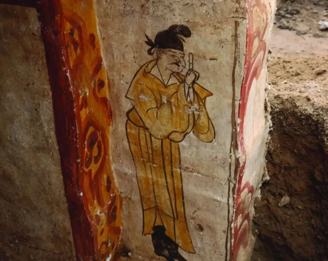 这个墙角画上的人,穿着一件明黄长袍,头戴软帽,手里还掐着道指,一副一本正经的架势,谁要不认识,八成还真以为这个家伙活着守着门呢,画得没一点糙,袖子宽大,站姿微弯,眼神硬是带点不容小觑的神气,考古专家说,这叫“守门人”,老时候还真讲究,一个墓门口少不得来一对,保着里头的世界安稳。