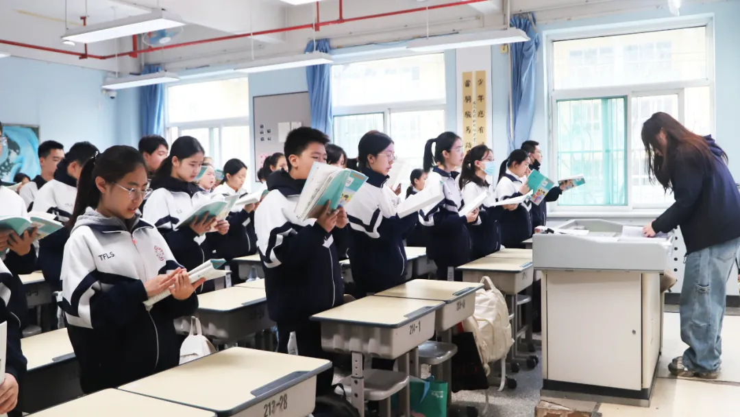 清晨的微光尚未散尽,我们已抵达太原市外国语学校,开启沉浸式学习。7时许,校园内书声琅琅,初、高中各年级学生整齐站立,专注投入地进行背诵与朗读,朗朗书声充盈整个校园,尽显学子昂扬向上的精神风貌。