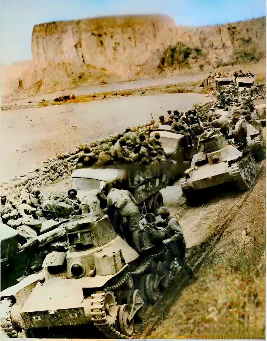 1937年11月8日,正在准备进攻太原城的侵华日军装甲联队行使在乡间道路上