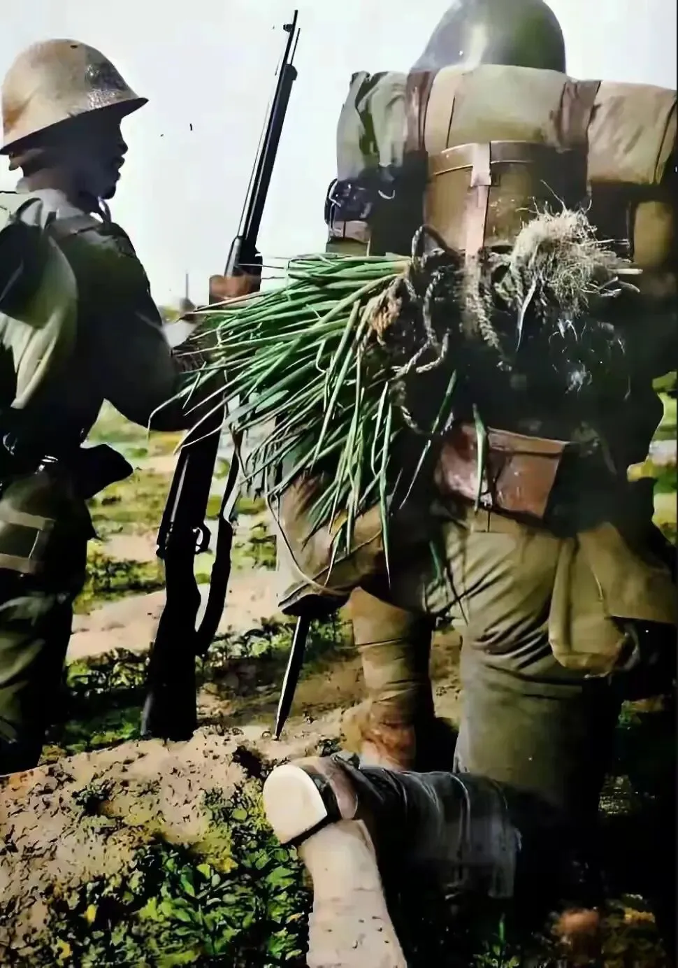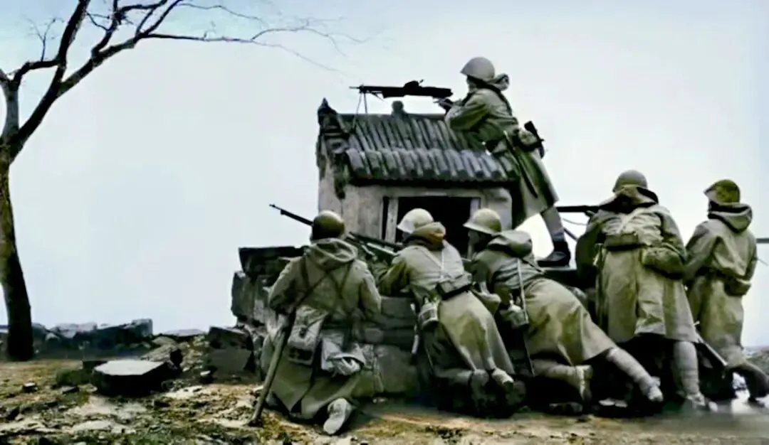 侵华日军的侦查小队将机枪架在土地庙上射击