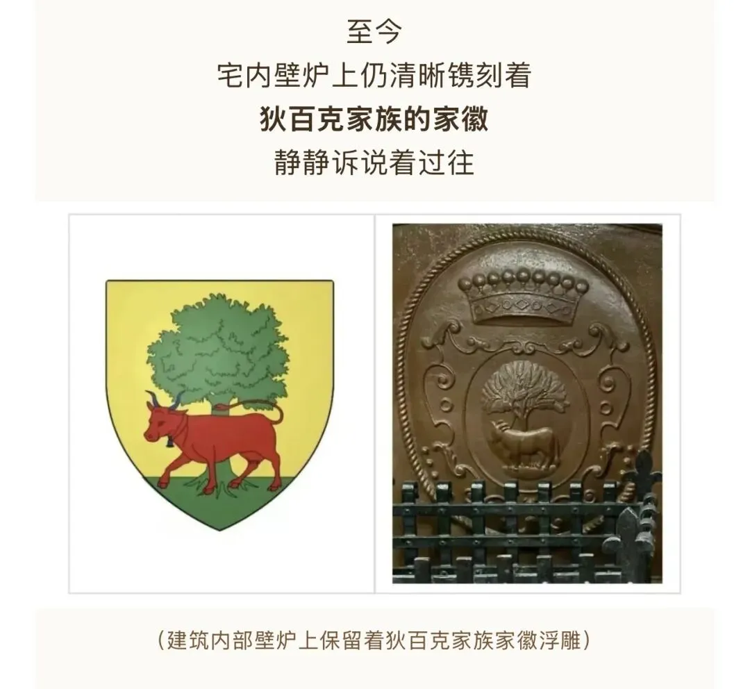 —彼时,没有人认真考证过别墅主人狄百克的家世,如今壁炉上的家徽却亦是官方主打的亮点(上图我的,下图东湖官号才发的,当然也没有费心标注来源🤔)。