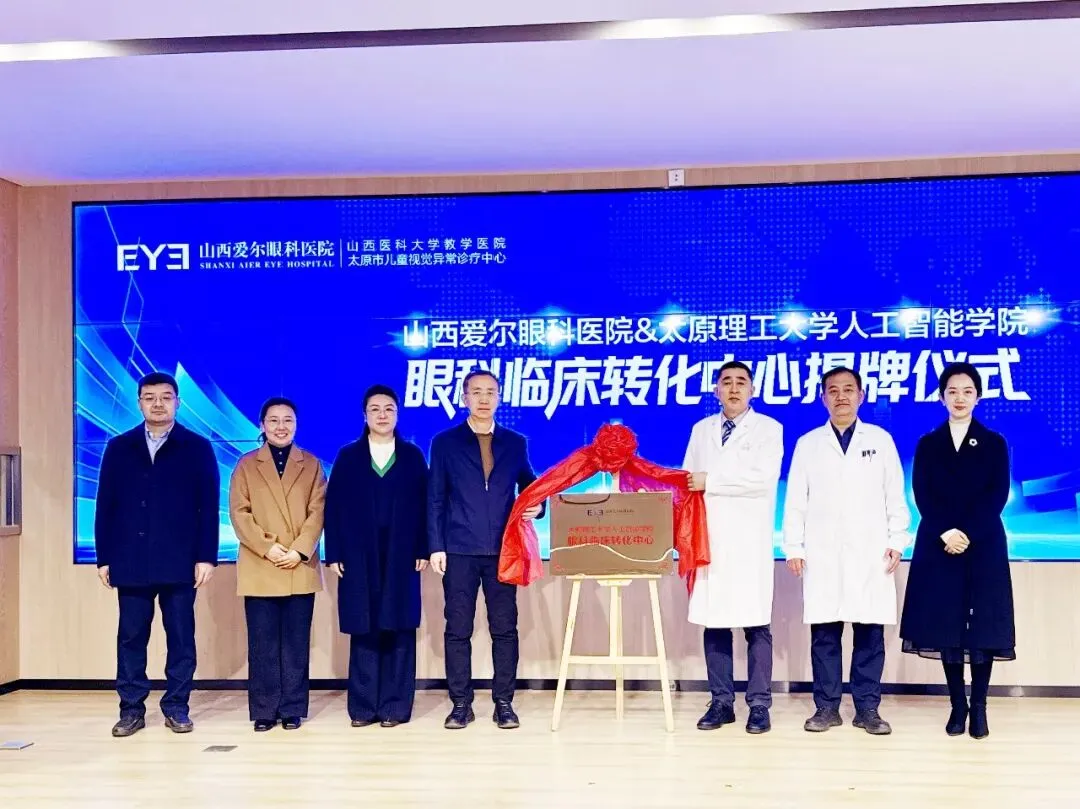 近日,山西爱尔眼科医院与太原理工大学人工智能学院合作共建的"眼科临床转化中心"在山西爱尔眼科医院正式揭牌成立。这是双方继去年联合研究成果登上国际权威期刊后,在"医工交叉"领域的又一次深度融合,标志着医校合作从“项目制”向“平台化”“常态化”迈进。太原市卫健委副主任赵宏英、科教科科长李娴出席揭牌仪式。太原理工大学科研院副院长李文凤,人工智能学院书记刘震、院长陈永乐,人工智能学院学术委员会主任陈维毅、教授李晓娜;山西爱尔眼科医院院长袁志刚、副院长陈鹏等双方代表共同见证这一重要时刻。山西爱尔眼科医院院长袁志刚表示,此次合作是太原理工大学人工智能学院和山西爱尔眼科医院的共同努力。太原理工大学人工智能学院院长陈永乐随后介绍了眼科临床转化中心的合作协议内容,明确了中心未来的研究方向与合作机制。随后,山西爱尔眼科医院副院长陈鹏与太原理工大学人工智能学院书记刘震代表双方签署合作协议。眼科临床转化中心将聚焦眼科疾病的机制研究、诊断技术创新、治疗器械研发等方向,依托太原理工大学在生物力学、人工智能等领域的学科优势,结合山西爱尔丰富的临床资源和病例数据,推动更多科研成果从实验室走向临床、从论文走向实践。仪式结束后,与会领导和嘉宾参观了爱尔眼科医院,实地了解医院的临床设施与科研条件。此次眼科临床转化中心的成立,不仅是双方合作历程中的重要里程碑,也为山西省探索"医工融合"新模式、推动眼健康事业高质量发展注入了新的动力。大同爱尔眼科医院副院长韩鹏飞表示:"眼科临床转化中心的成立,是医工融合、校企协同的重要里程碑。近两年来,我们与太原理工大学的合作已经证明,'高校创新+临床验证'是一条行之有效的路径。未来我们将围绕近视防控、白内障精准诊疗、圆锥角膜的识别诊断等重点方向,持续加大科研立项投入,完善平台建设,让‘医工交叉’的火花,持续燃烧成照亮眼科学前路的火炬,让更多科研成果真正惠及患者,服务三晋百姓的眼健康。"