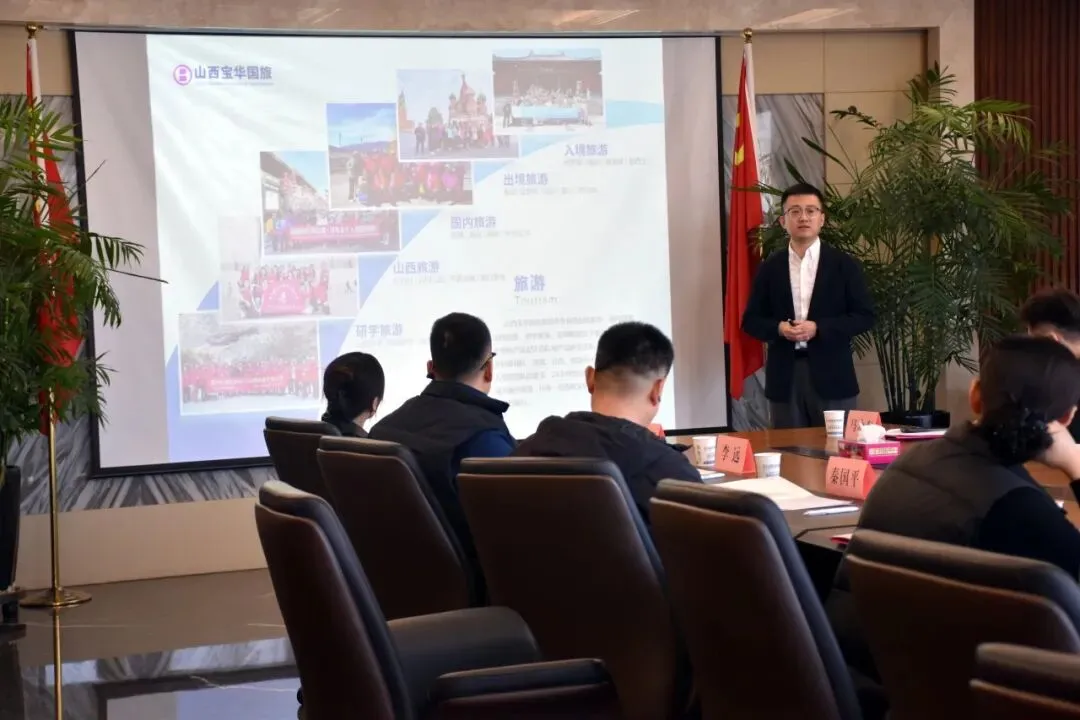 山西宝华国旅副总经理刘艳桃主持会议,对苗会长及各会员企业领导及代表的到来表示热烈欢迎,并一一介绍了出席嘉宾。山西宝华国旅副总经理李高超介绍了山西宝华国旅发展现状及六大主营业务旅游、包机、机票、签证、会务会展服务、外币兑换,随后各区域负责人就国内旅游线路和出境旅游线路向大家作了详细推介。