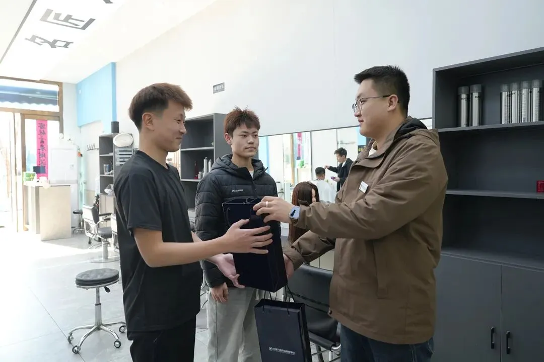 在回访过程中,徐主管一行详细参观了名匠造型的工作环境,并与企业负责人及两位毕业生进行了深入交流。企业方对两位同学入职以来的表现给予了高度评价,称赞他们专业技能扎实、工作态度认真、适应能力强,充分展现了万通学子良好的职业素养和精神风貌。
