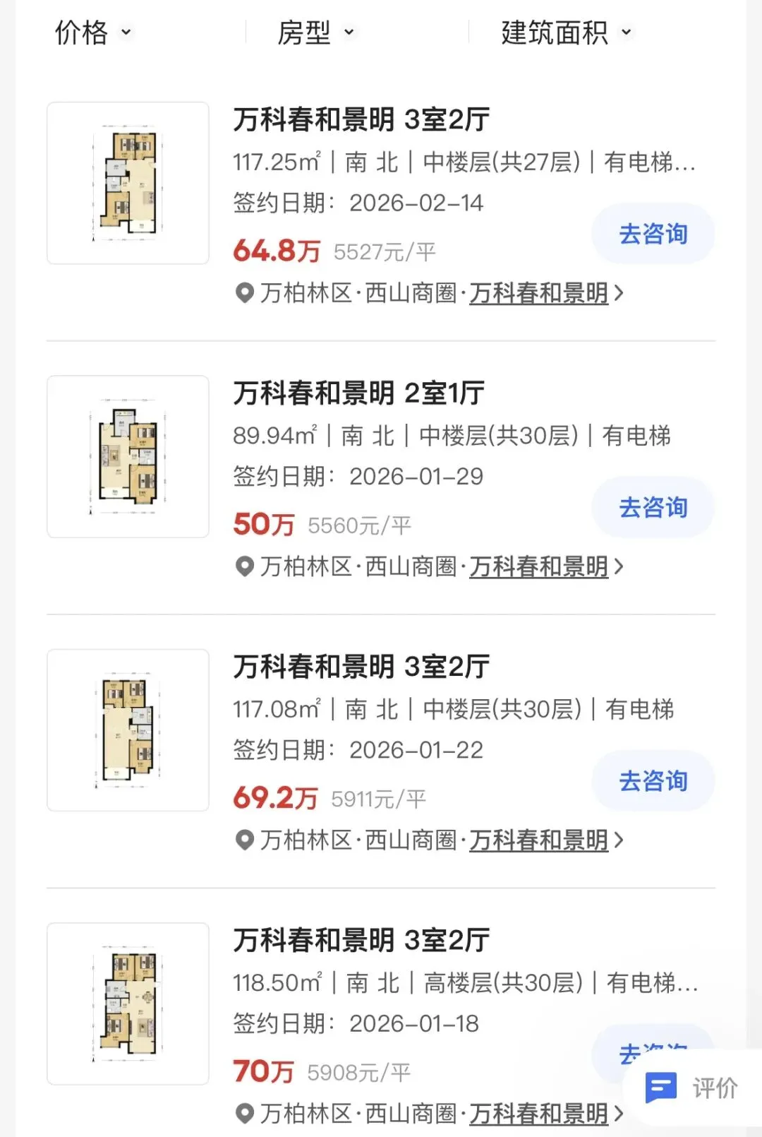我从贝壳找房查了下万科春和景明的二手房价格,并没有粉丝说的那么低,成交基本在5500-6000元/㎡之间。不过这个价格也已经是太原品牌房企准新二手房中,价格的Z低梯队了。