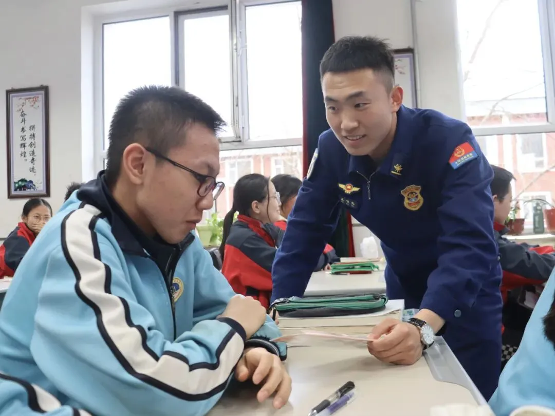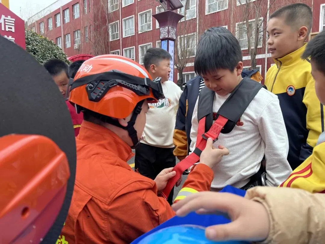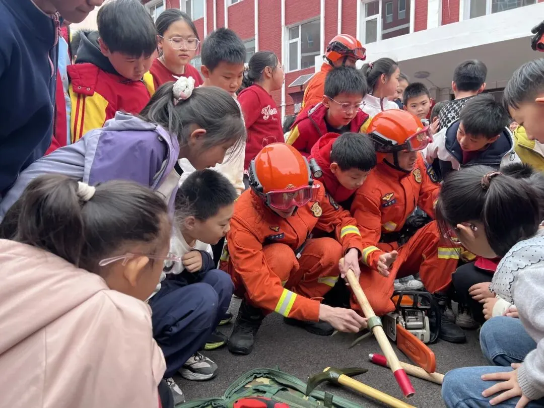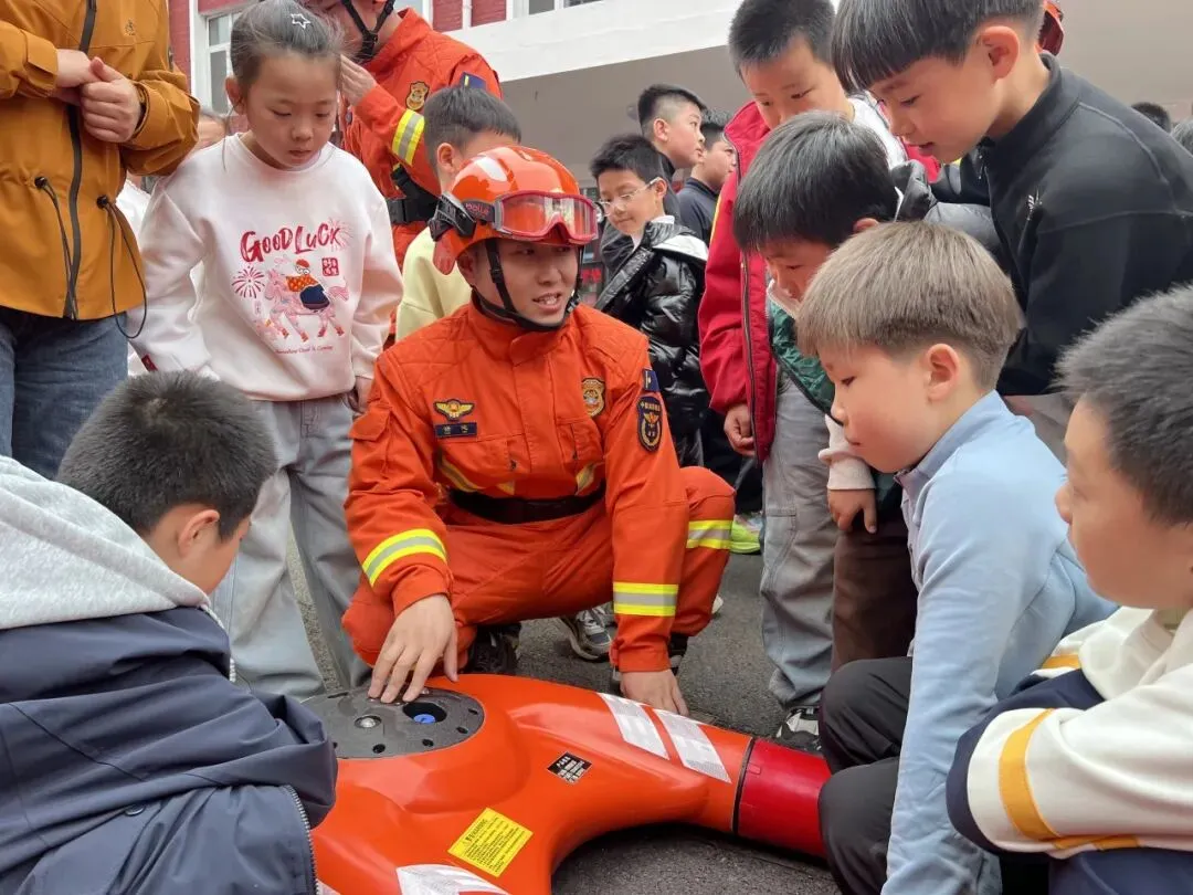 在装备展示环节,指战员对灭火器“提、拔、握、压”四字口诀进行分解示范,并邀请老师和安保人员亲身体验。同时,通过介绍森林灭火、地震救援等专业装备,让同学们近距离了解消防救援工作,现场互动热烈。