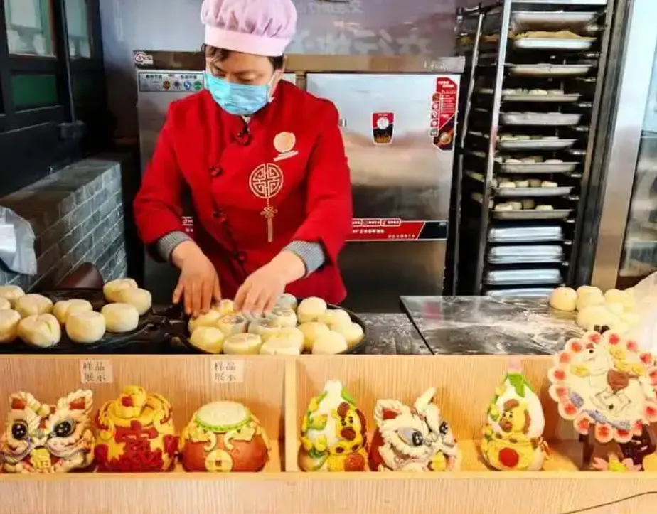 花馍吃得安全放心,还能长时间保藏。专业的晾制工艺,解决了传统花馍易霉变、开裂的问题,南方顾客买回去直接摆上书架、茶台,三五个月不变形。“春节期间,光是‘马上有钱’这一款,我们就卖出3000多个。”朱晋伟说,不少广东、浙江的游客专程来找这款产品。