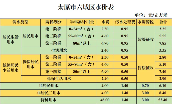小编整理了太原居民用水水价