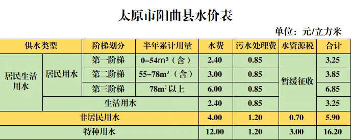 阳曲县物价局《关于居民用水阶梯价格及污水处理费征收标准的通知》(阳价发〔2015〕22号);