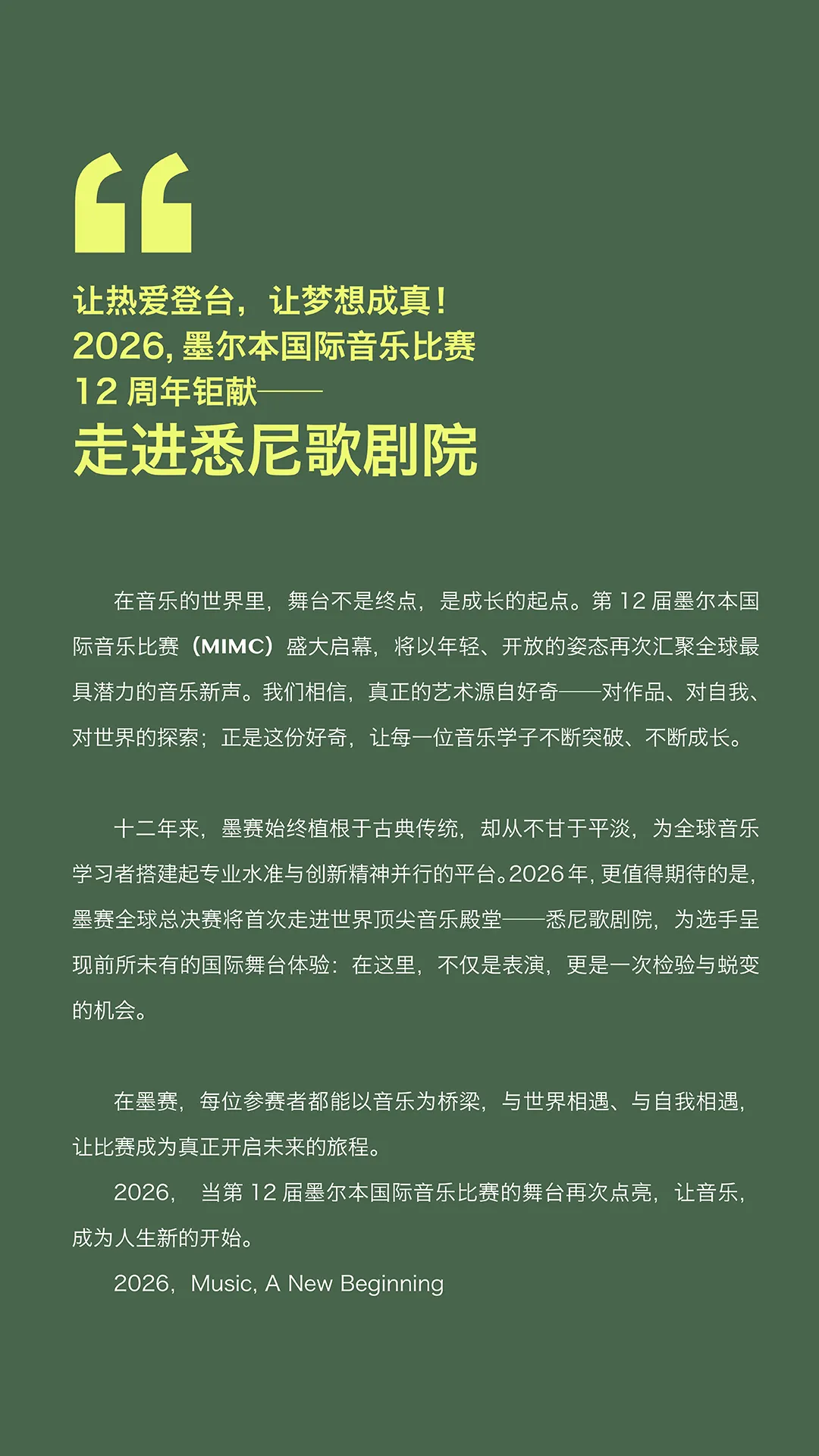 >太原赛区预选赛报名启动|2026第12届墨尔本国际音乐比赛