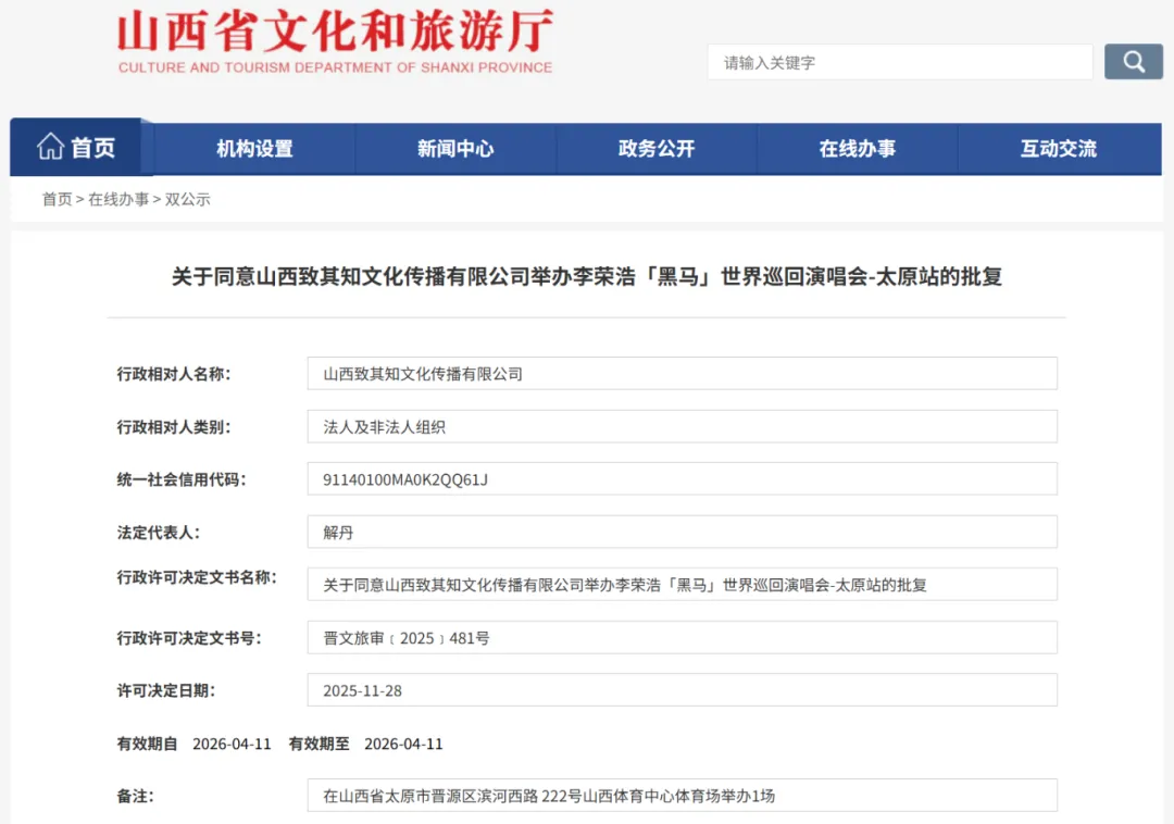 审批状态:已通过山西省文化和旅游厅正式批复