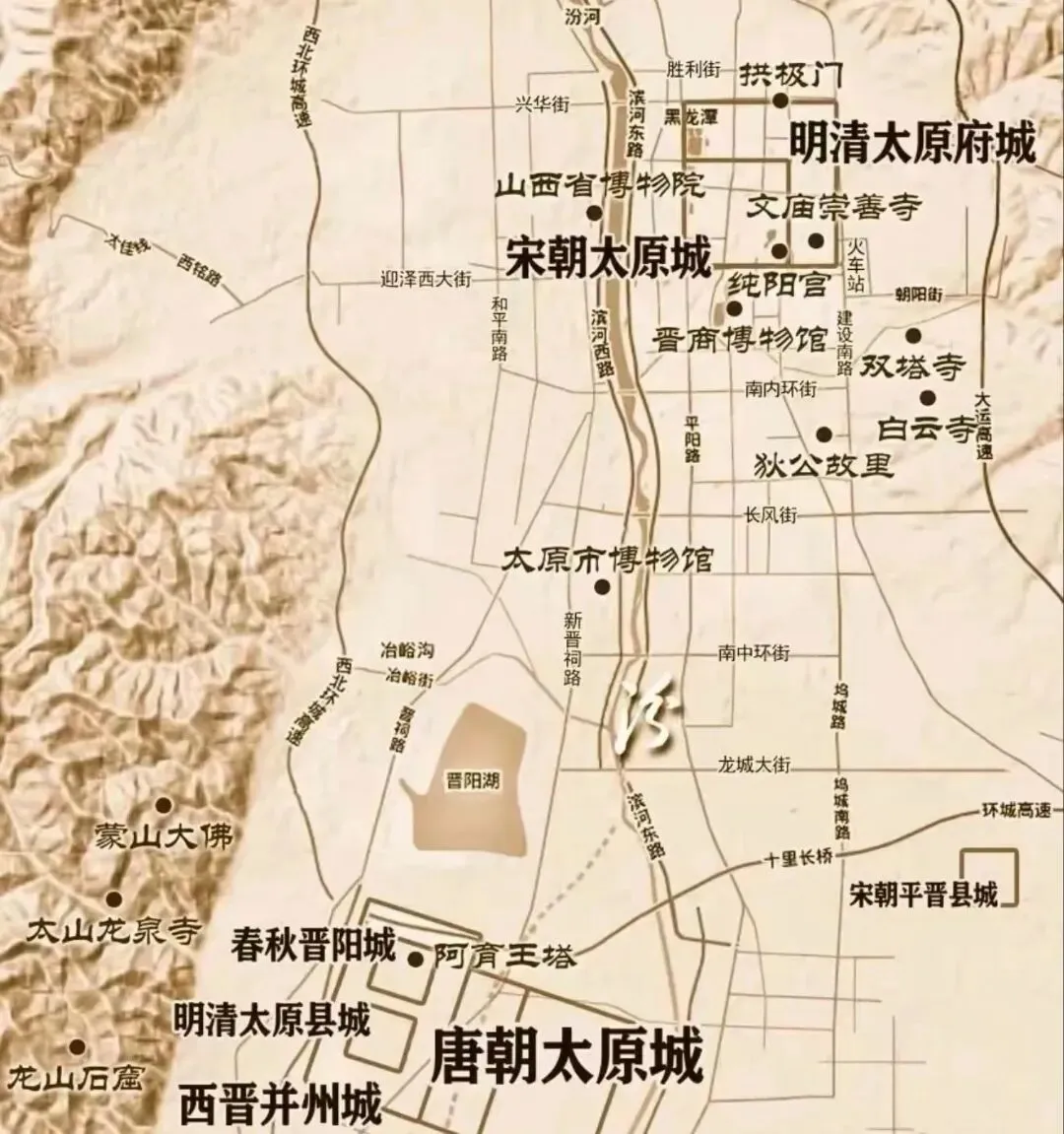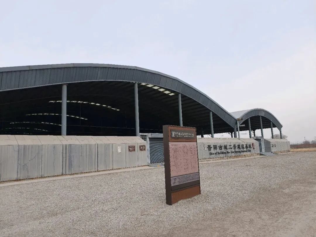 北宋建立后,开始不断消灭五代十国的残余政权。北汉作为最后一个被消灭的政权,让宋太宗怀恨在心,最终通过水淹火烧彻底抹平了晋阳城。太原在北宋之后,逐渐又被统治者重视起来,到明朝后开始大规模城建,实现了凤凰涅槃,有了“锦绣太原”的美誉。不过看地图,明清时期的太原城还分为府城和县城,我现在所处的位置就是唐晋阳城。从博物馆出来,准备去寻找附近的晋阳古城遗址,看到骑骆驼的项目,如果把地面换成沙漠说不定体验更好。沿着小路寻找遗址,其实此时导航错了,正在去往一处错误的目的地。好家伙导航把我整哪来了,问了路过的大哥说这是一片废墟。重新导航回到正途了,发现了刚刚在天上飞的直升飞机。晋阳古城国家考古遗址公园毕竟是公园,看地图范围,只有原先古城遗址的1/10大小都不到。远看这些遗址仓库,有一种不详的预感,大门紧闭着,难道是到点关门了。近在咫尺却因时间错过了,也是一种历史的遗憾吧,等以后对这段历史更熟悉了再来吧。用这种大棚一样的建筑盖的遗址保护壳,看着很新还在考古中的感觉。晚上回到市区,只不过来不及感受锦绣太原城的美丽繁华了。在太原火车站附近又找到这家刀削面连锁店,单纯是为了这口积极鲜美的老陈醋。