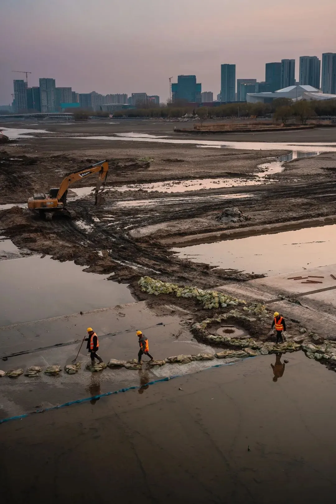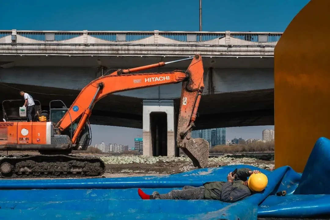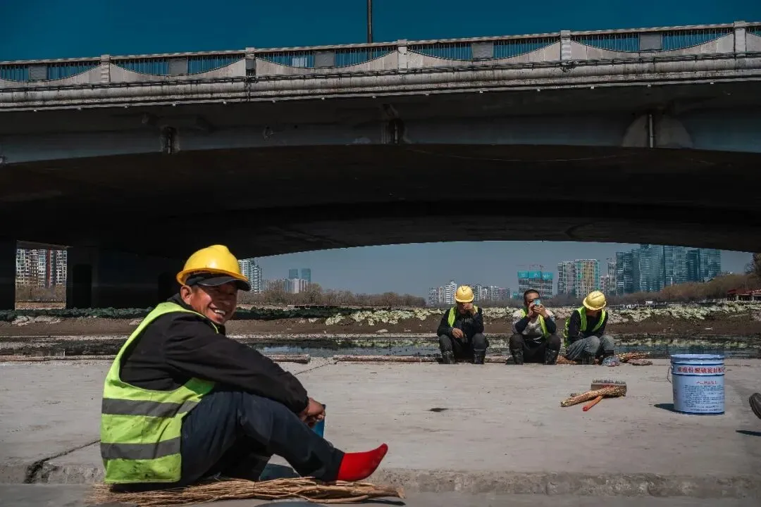 清淤,也不是简单的挖去淤泥、清理杂物,它更像我镜头里的留白,看似是“空白”,实则是为了更好的绽放。就像这汾河,褪去河底的冗余与污浊,给河流留一段休整的时光,褪去负重,才能让流水更畅、碧波更清,才能孕育更蓬勃的生机,这是汾河的留白,为了更好的“生”;而对于这些清淤工人,正午的片刻休憩,便是他们工作里的留白,卸下一身疲惫,简单果腹、短暂停歇,不是懈怠,而是为了更好地投入劳作,这是他们的“生”,是藏在辛劳里的烟火与坚守。