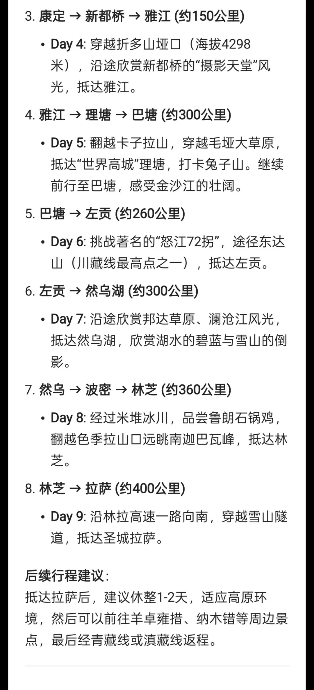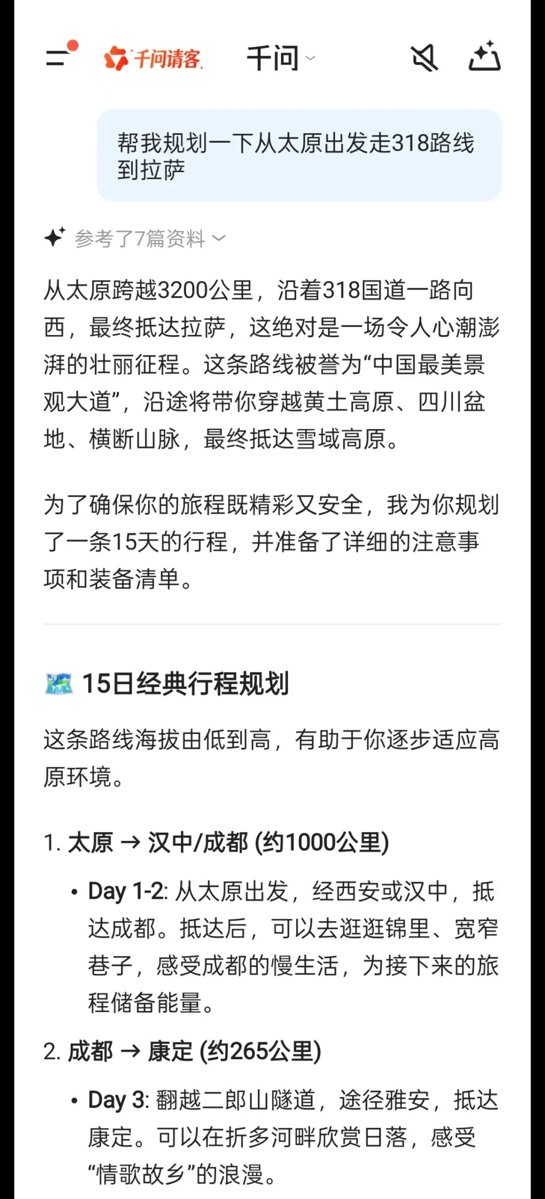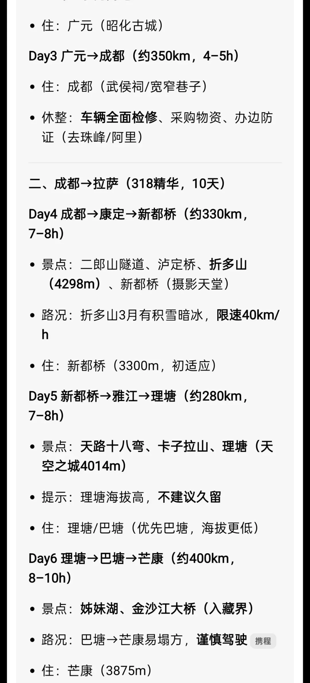 从太原出发走318到拉萨,找了三个大佬规划了一下路线。
