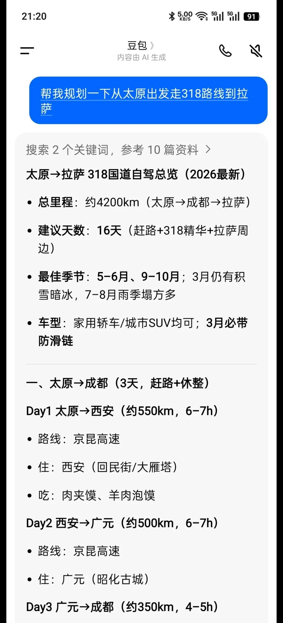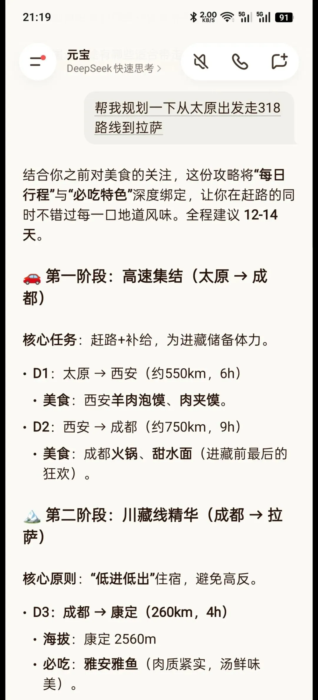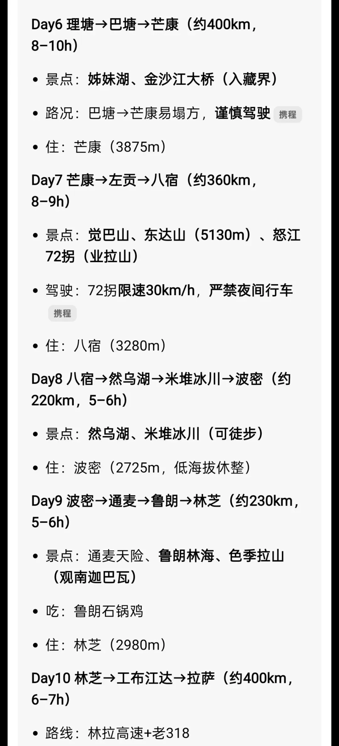 从太原出发走318到拉萨,找了三个大佬规划了一下路线。