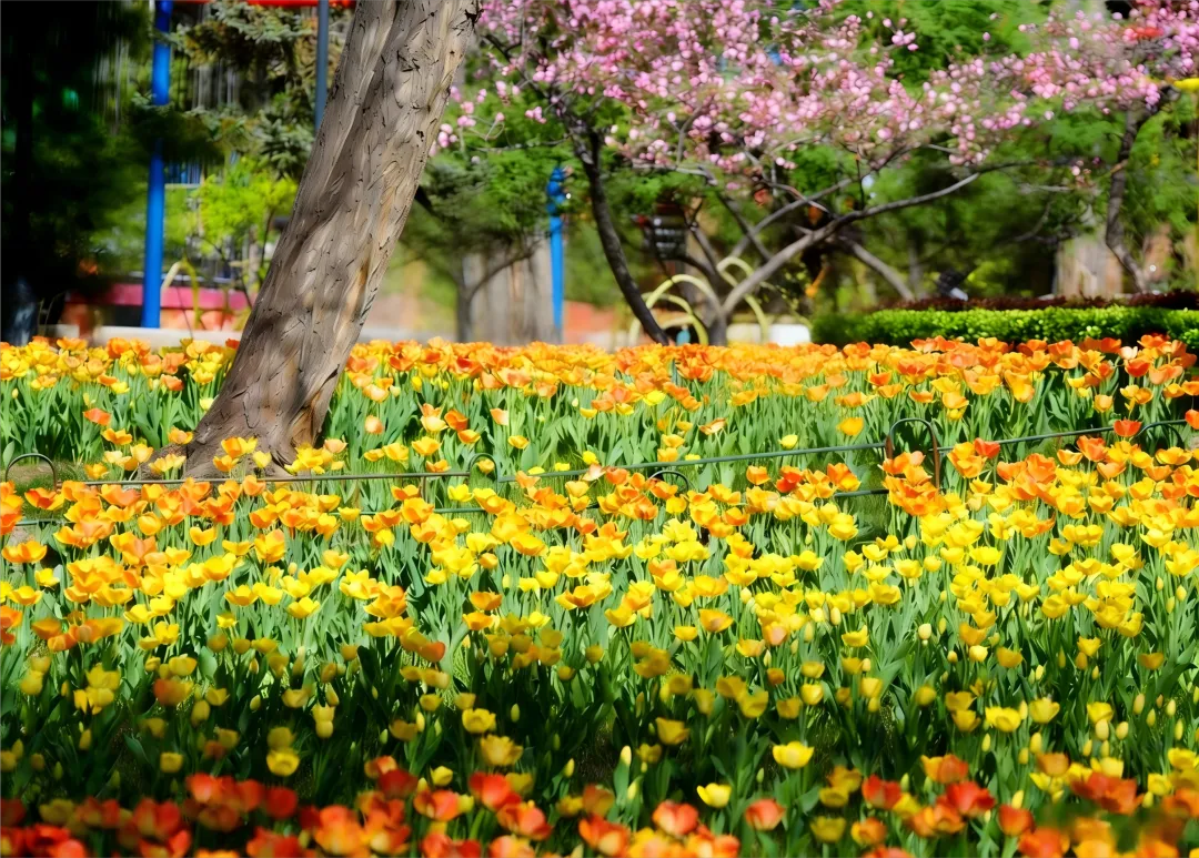 太原植物园:郁金香、海棠绽放。4 月去植物园,能看到郁金香和海棠同时开放。