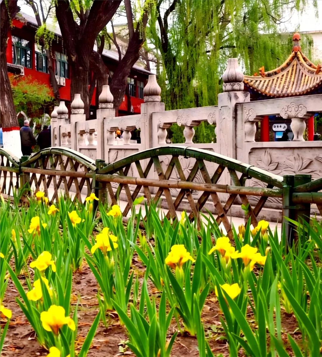 纯阳宫:紫藤垂帘、丁香绽放。4 月中下旬,红墙映繁花,古柏伴花影,尽显闹中取静的雅致。