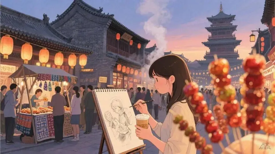 晋商博物院(督军府旧址,喝盖碗茶)→ 钟楼街(买文创、吃小吃)→ 食品街(感受烟火气)。