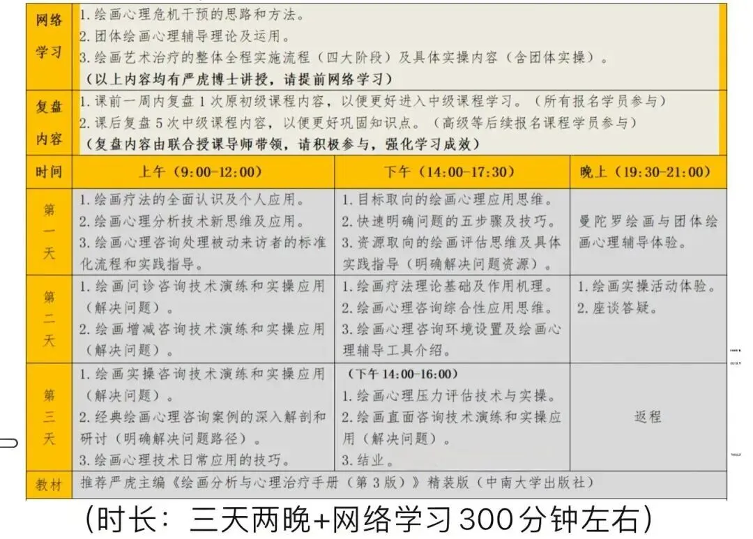 (时长:三天两晚+网络学习300分钟左右) *实际课程安排会根据现场情况做调整