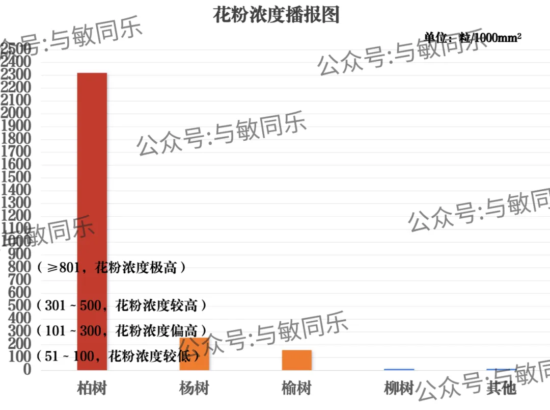 气传致敏花粉种类包括:柏树、杨树、榆树、柳树等;
