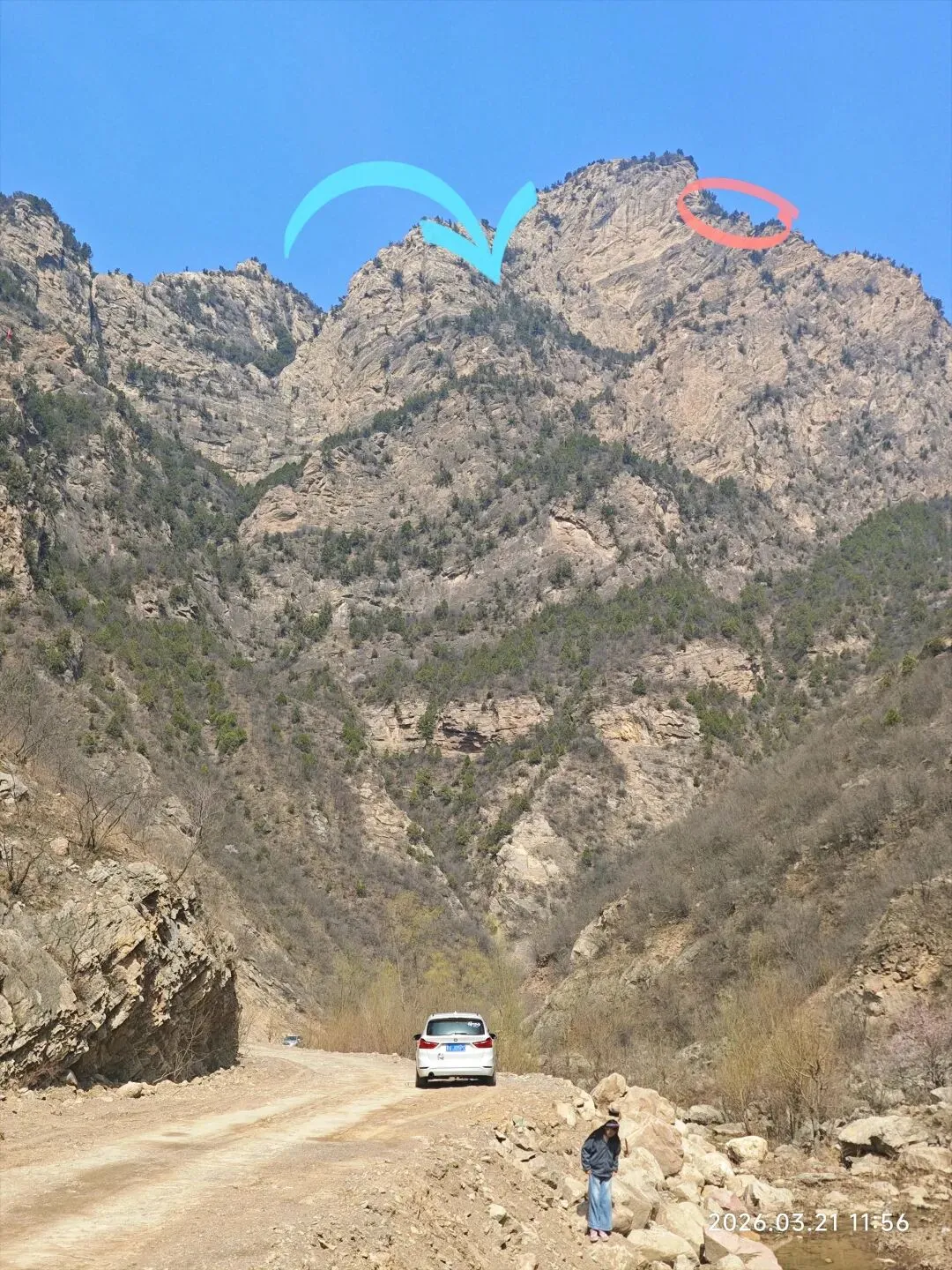 我们大约爬到上图我蓝色标记的位置,但是看见路线一直延伸到红圈圈那块。山的背面看不到了,不知道后面还有多长的路?哪位达人可以给科普一下这条路线。