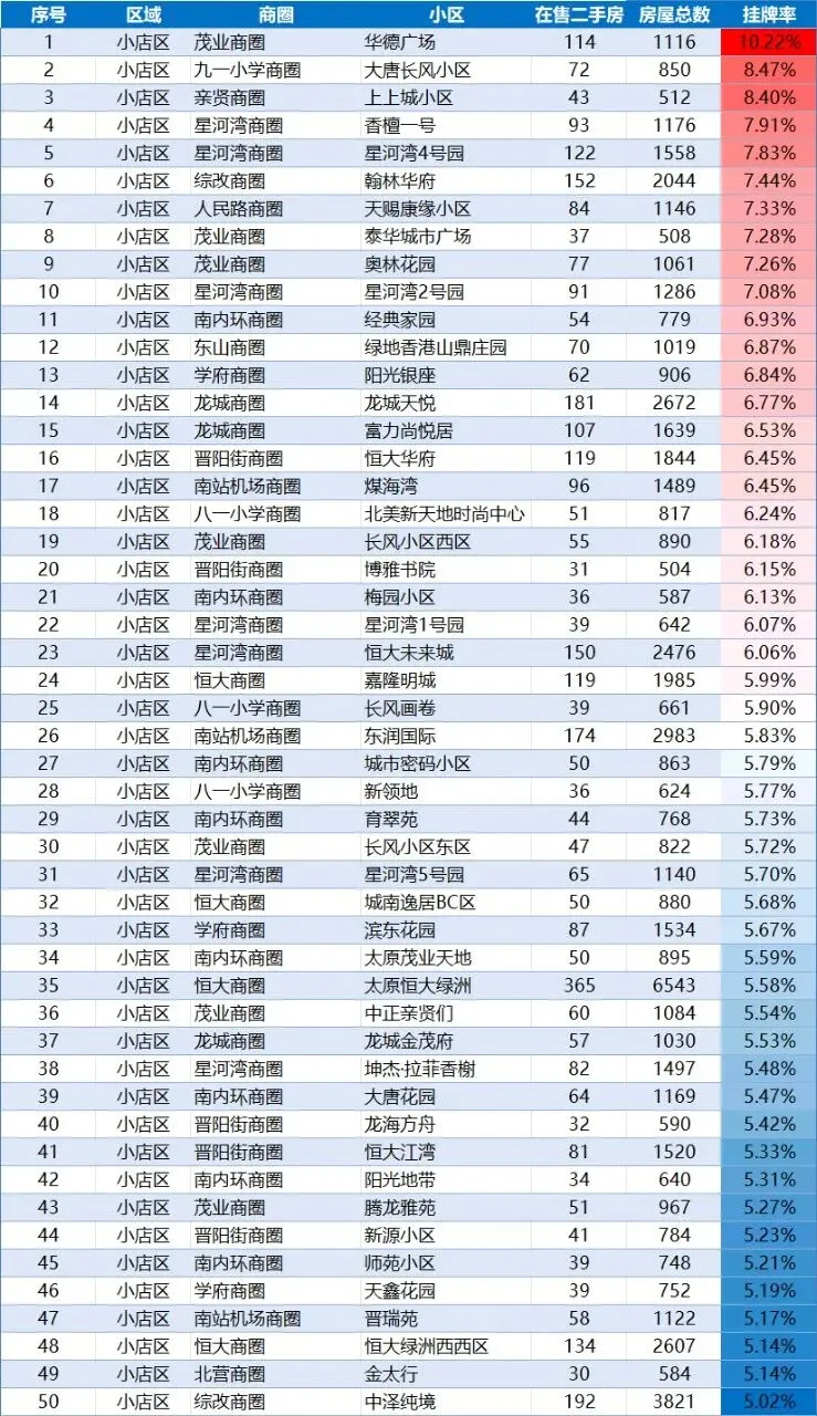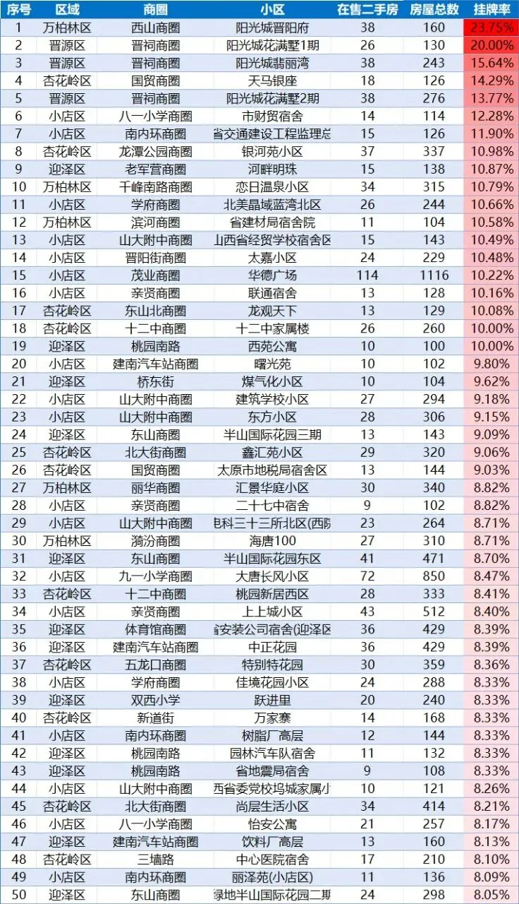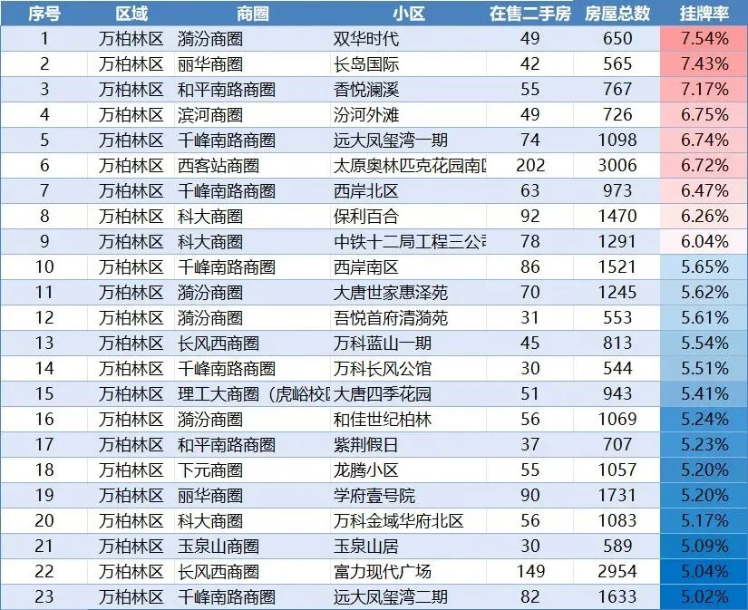 最近,我整理了太原近2000多个有一定规模楼盘的挂牌率,有很多有意思的新发现。