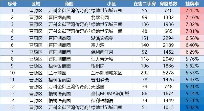 根据我们的统计,太原存量约230万套房子,目前在售5万套,整体的挂牌率2.2%。