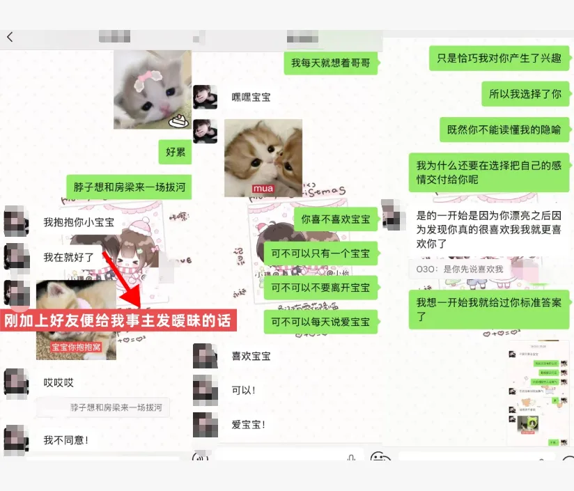 我事主是瓜主的老板,在多次点瓜主后我事主买了瓜主的好友位。在加上好友第一天时,瓜主便给我事主发很暧昧的话语并说“如果和你在一起,我会不当陪玩”,因此我事主便相信了他的话,认为他是很好的人。