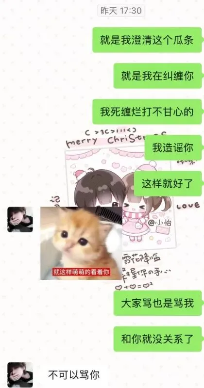 后我事主与瓜主和好,但瓜条不知被谁泄露了出去,我事主此时还想保瓜主,打算对外宣称是自己死缠烂打,可最后却发现瓜主又去找别的女生聊天❗️完全是狗改不了吃屎