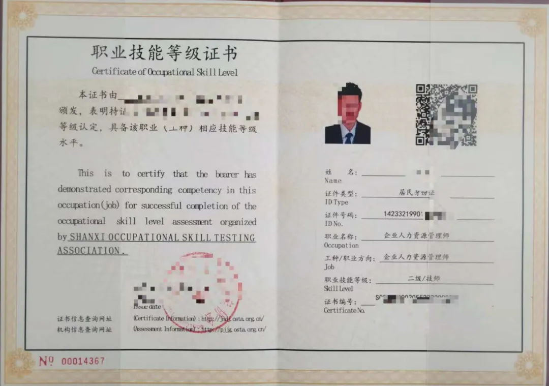 职业资格证和技能等级证样本