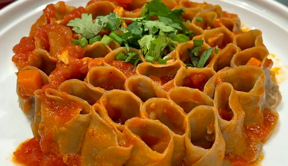 莜面栲栳栳怎么做:莜面用热水和成软硬刚好的面团,搓成长条,绕成小卷,像一排小篓子,上笼蒸熟。吃的时候浇羊肉臊子或蘸蒜泥醋汁,面一入口是谷物的甜,热气一冒,整个人就缓下来。
