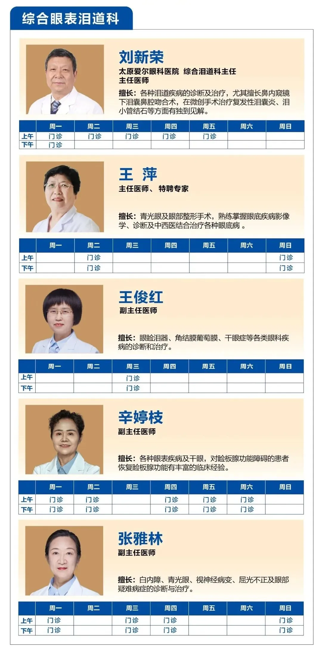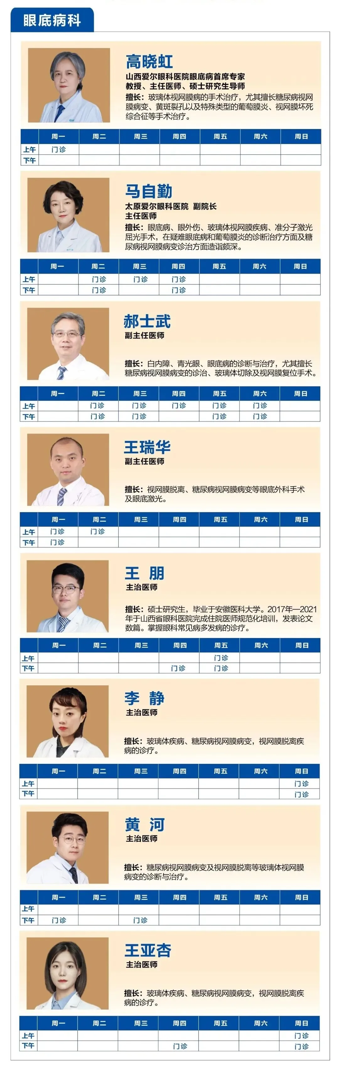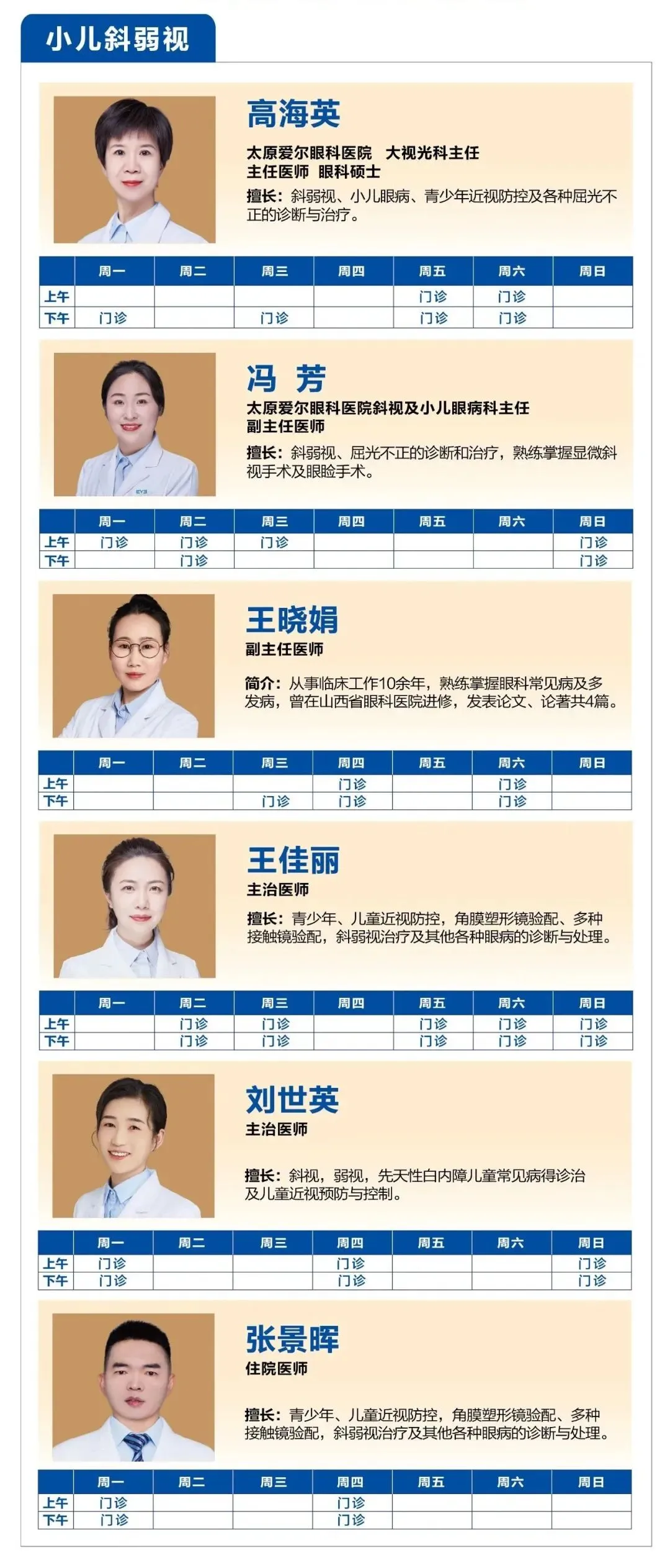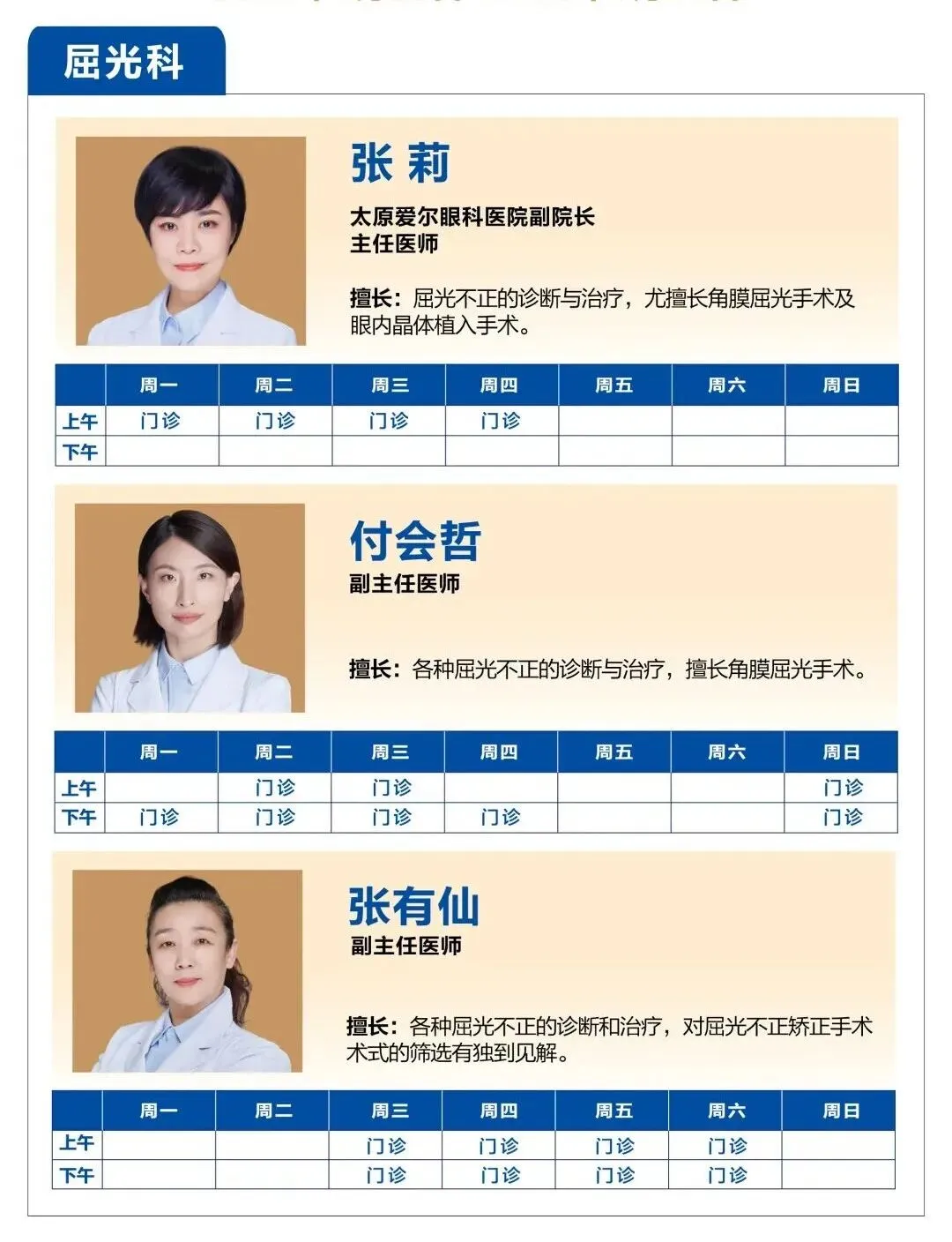 >太原爱尔眼科医院2026年3月23日—2026年3月29日门诊排班表