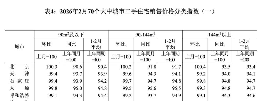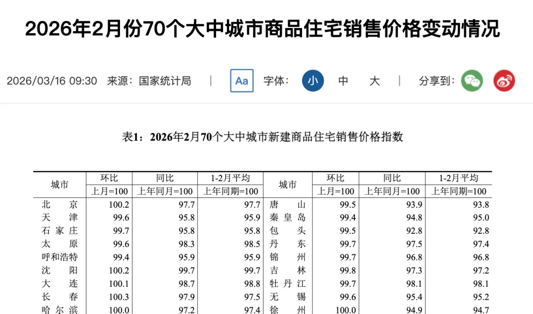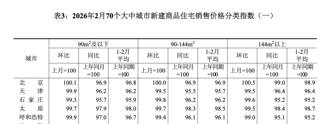 近日,国家统计局发布了2026年2月70个大中城市商品住宅销售价格变动情况,太原新房、二手房价格环比、同比都又跌了:新房方面:环比下跌0.4%,同比下跌1.7%,比上年同期下跌1.5%90㎡及以下:环比下跌0.3%,同比下跌2.1%,比上年同期下跌2%;90-144㎡:环比下跌0.3%,同比下跌1.7%,比上年同期下跌1.5%;144㎡以上:环比下跌0.5%,同比下跌1.6%,比上年同期下跌1.3%。二手房方面,环比下跌0.5%,同比下跌4.8%,比去年同期下跌4.9%。90㎡及以下:环比下跌0.2%,同比下跌5.0%,比上年同期下跌5.2%;90-144㎡:环比下跌0.5%,同比下跌4.4%,比上年同期下跌4.5%;144㎡以上:环比下跌0.7%,同比下跌5.2%,比上年同期下跌5.3%。太原新房、二手房已经连续多月下跌,我认为原因有以下几点: