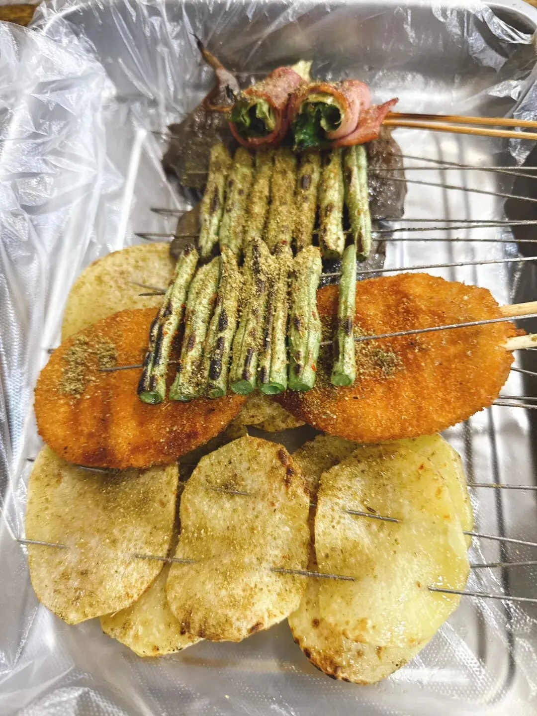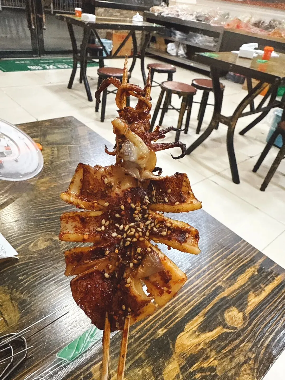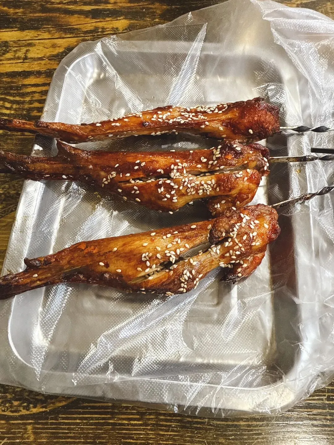 这家开了很久,最特别的就是吊炉——不过只吊鸡翅和羊肉串,其他串还是正常烤。