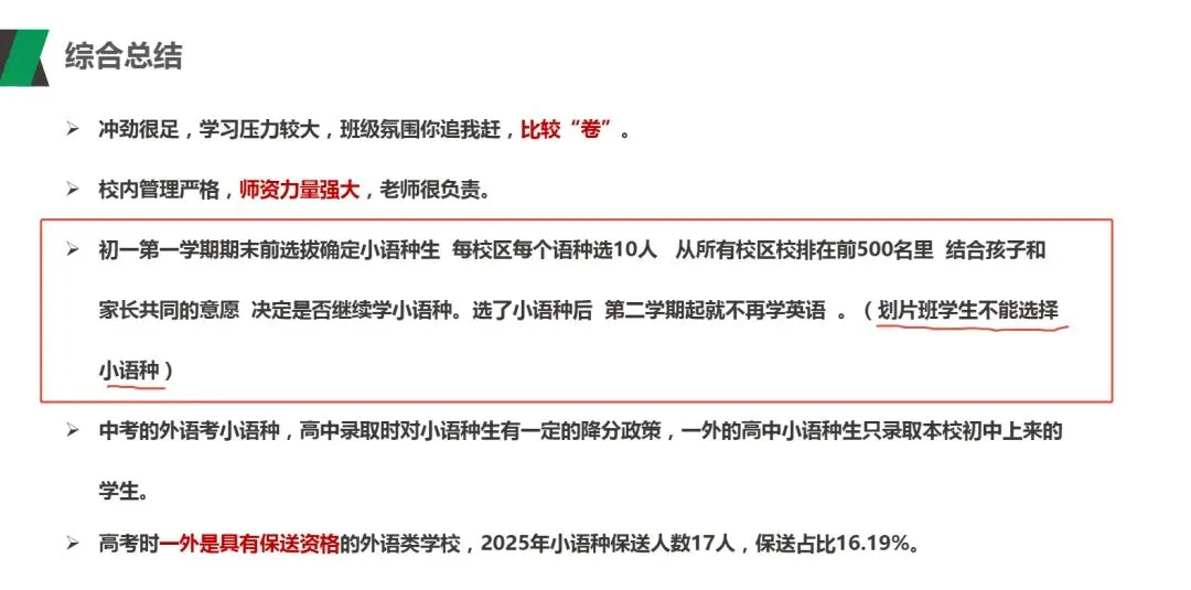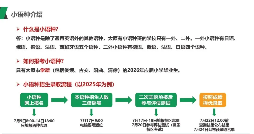 初一第一学期期末前选拔确定小语种生 每校区每个语种选10人 从所有校区校排在前500名里 结合孩子和家长共同的意愿 决定是否继续学小语种。