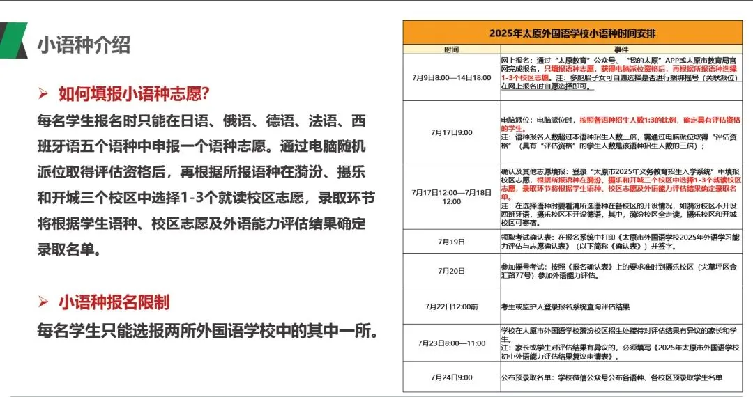 一外报名时就要选好语种,摇上后再填报校区志愿。一外和二外只能二选一填报,但可以分别和进山中学组合报名。