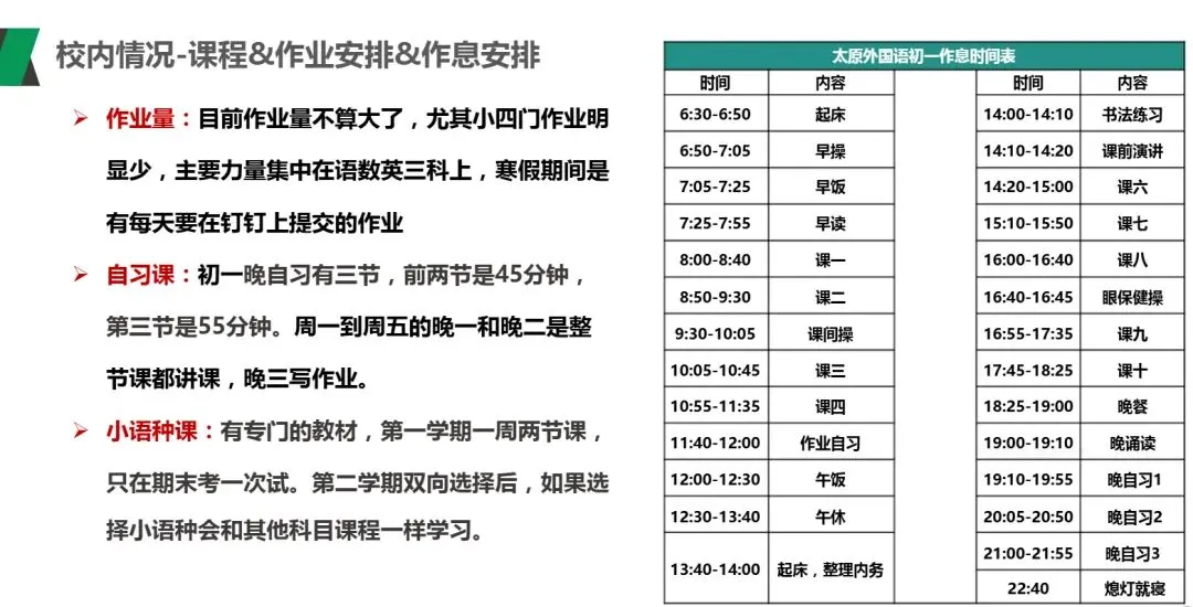 作息时间表,作业量不算大,节奏还是比较紧张的