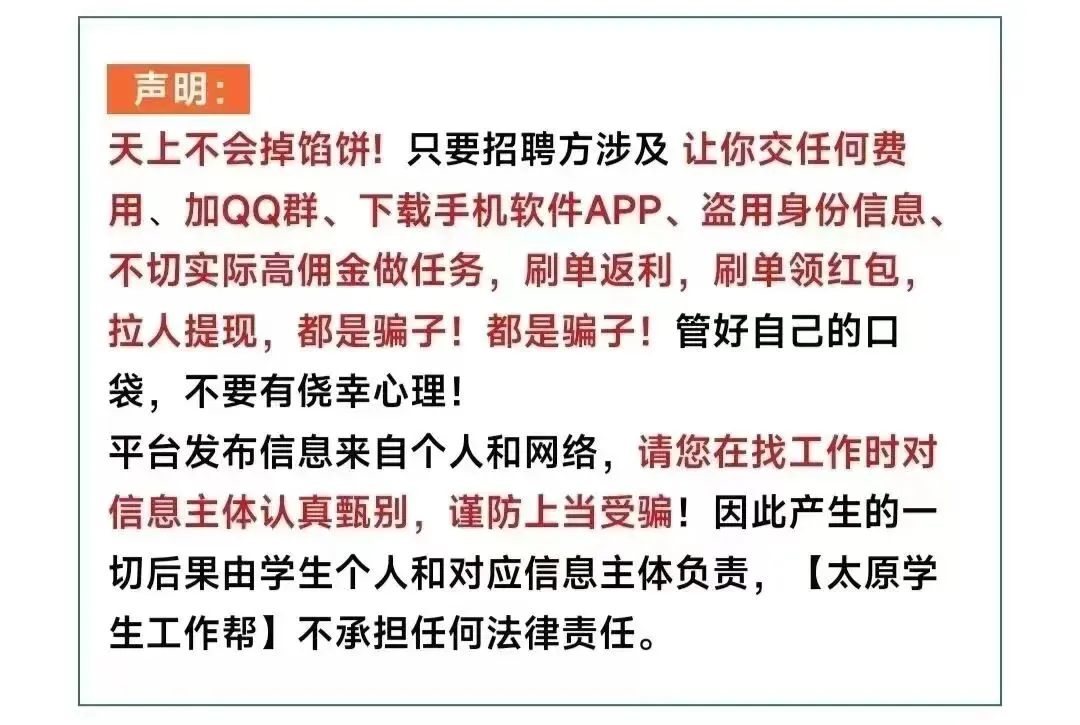 📢📢📢工作地址:太原各个区域均可安排!(也可安排住宿)