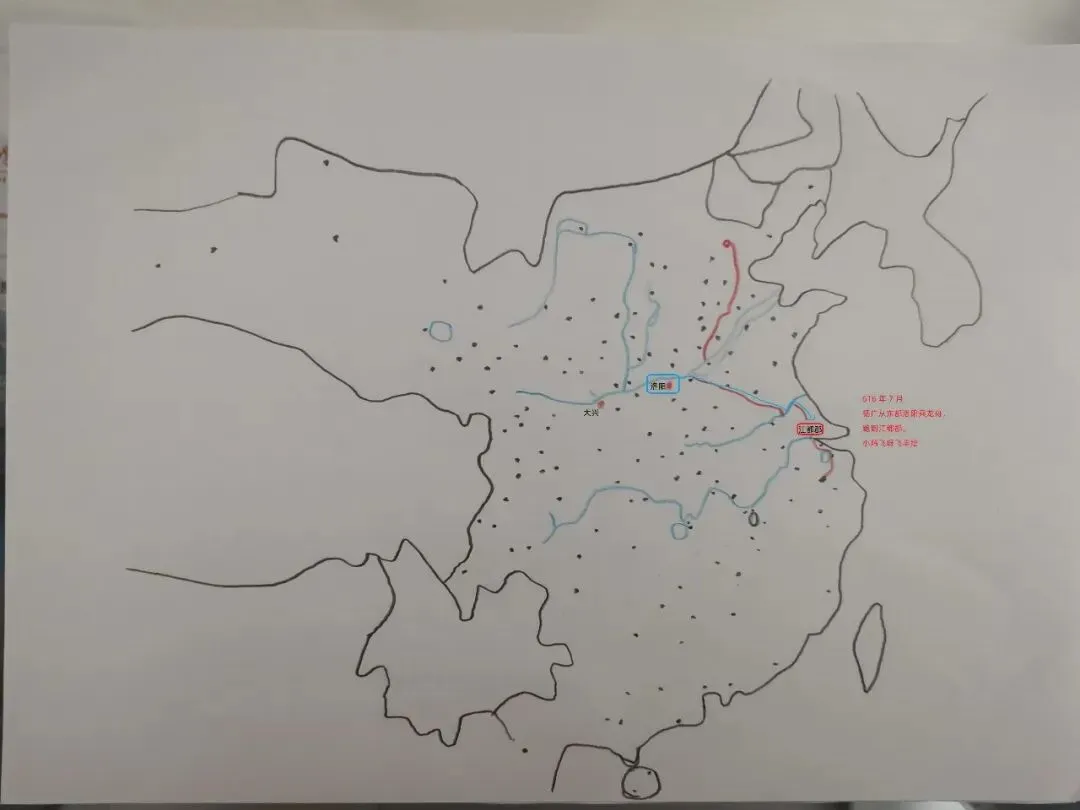 公元616年,也就是大业十二年,那时候天下大乱,全国各地叛乱四起。隋炀帝眼看局势越来越糟,自己也管不住了,为了保住性命,在七月的时候,他扔下隋朝的东都洛阳,跑到南边的江都去了,想着在江南能躲一躲,寻求最后的欢愉。(图1)