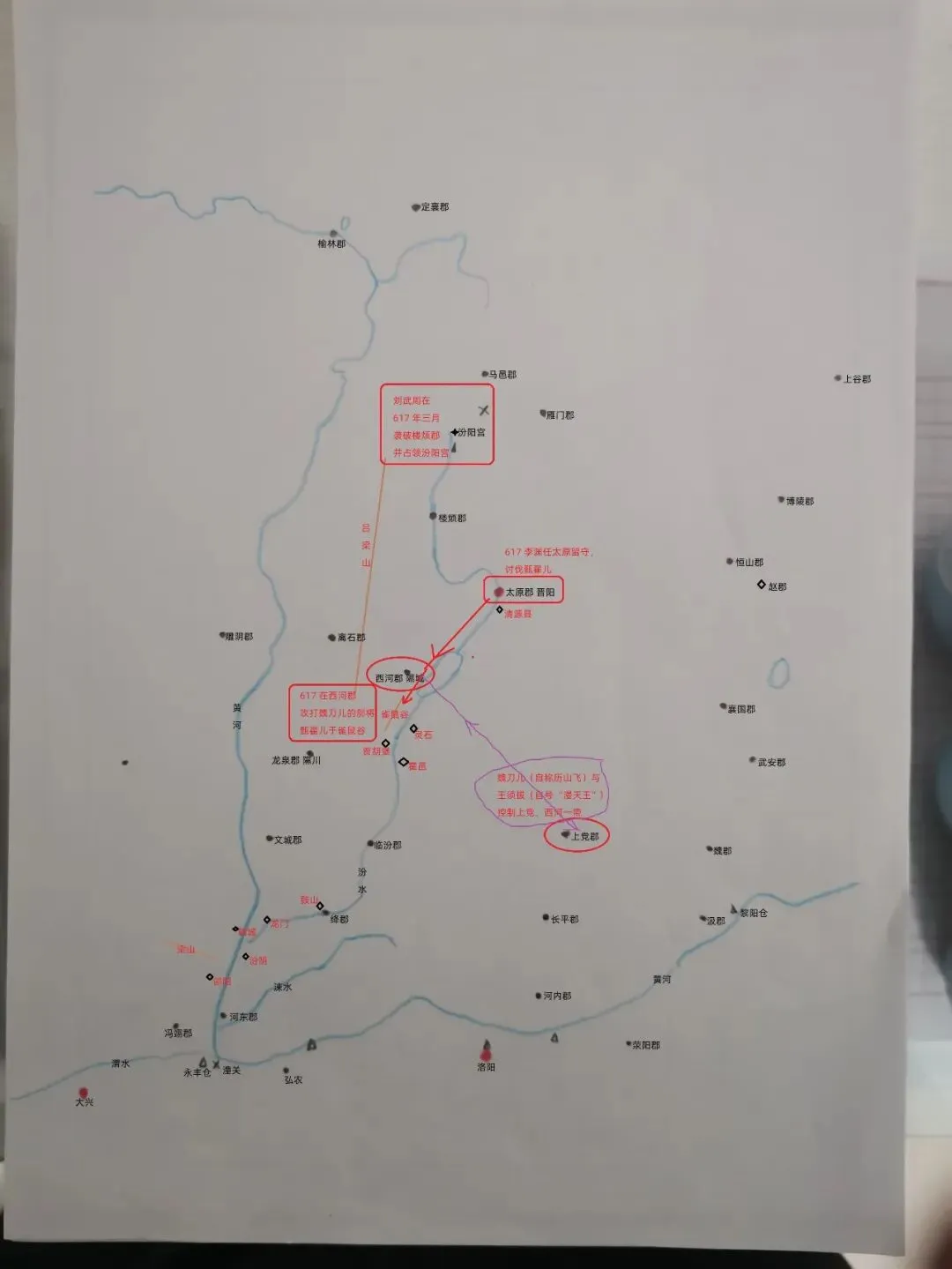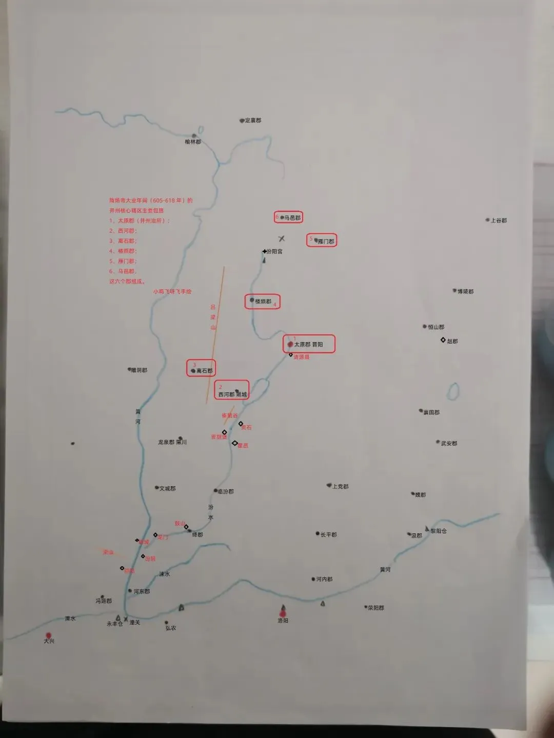 首先我们看看并州在哪儿,隋朝并州太原郡的行政区划在不同时期有所调整,隋炀帝大业年间(605-618年)的并州核心辖区主要包括1、太原郡(并州治所);2、西河郡;3、离石郡;4、楼烦郡;5、雁门郡;6、马邑郡,这六个郡组成。(图2)