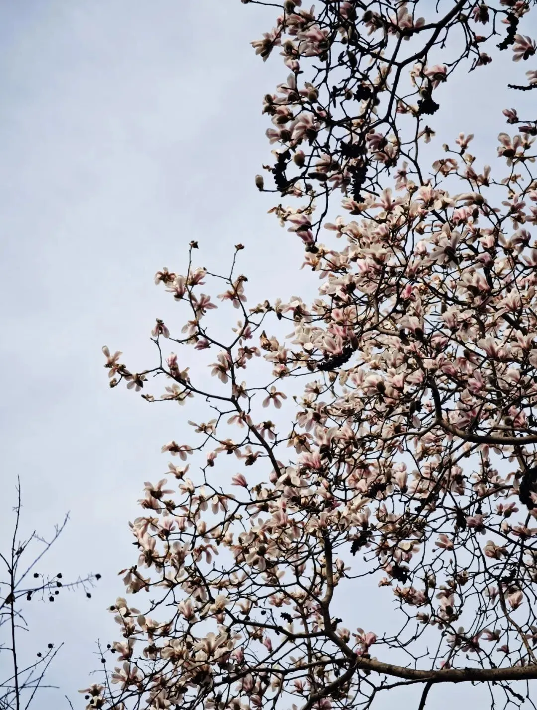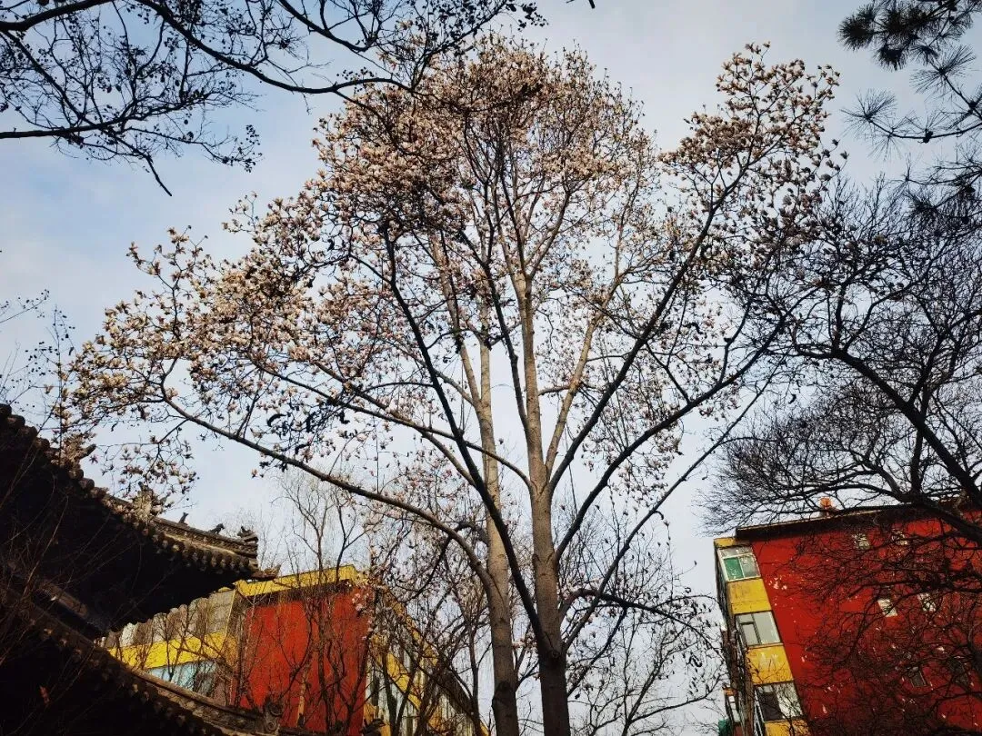 大家行至北园内,讲解员请大家抬头向上看,两棵较高的玉兰树分立两边,玉兰花已缀满枝头,独有的嫩红与柔粉相互交织,花瓣舒展轻盈,在阳光下泛着温润的光泽,清浅淡雅的花香随风漫溢,沁人心脾、涤荡心绪。构成了一幅雅致动人的春日画卷,园内游人如织却井然有序,处处洋溢着春日的生机与活力。