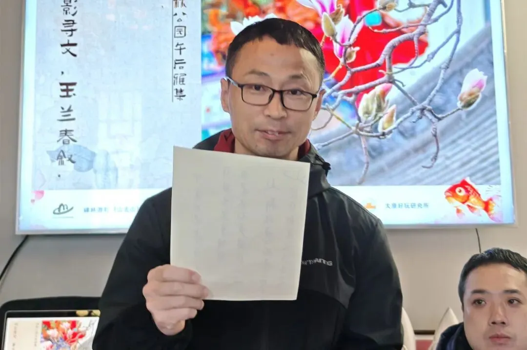 游园结束后,大家再次回到了“碑林游礼”小屋,此刻,主理人小鱼拿出了准备好的以玉兰为背景的信纸,请大家写一段自己喜欢的话。