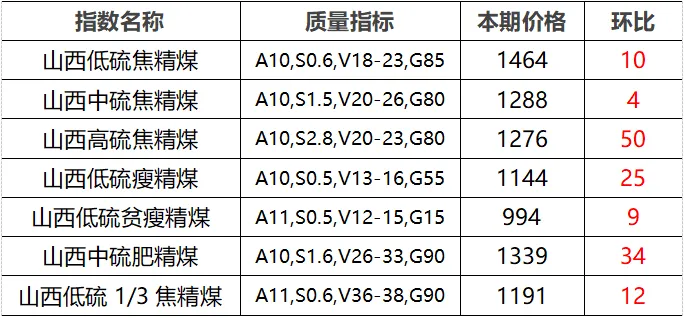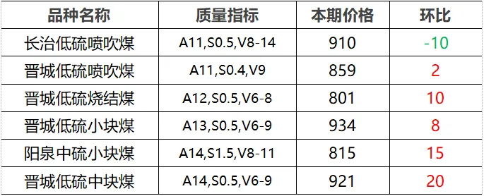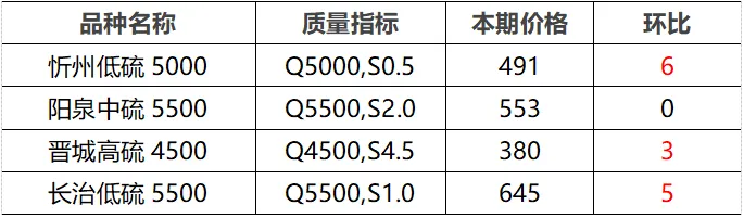 4.市场价格主要为中国太原煤炭交易网自动成交交易价格,个别为企业报价(坑口含税)。