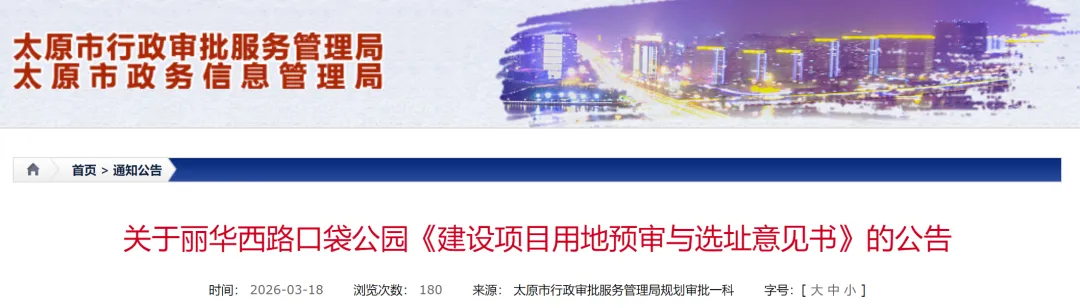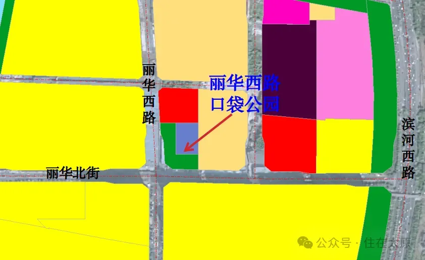 丽华西路口袋公园位于万柏林区,丽华北街与丽华西路交叉口东北角,用地面积5265平方米。