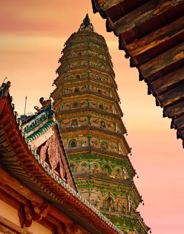 应县木塔:应县木塔全名为佛宫寺释迦塔,位于山西省朔州市应县县城内西北角的佛宫寺院内,是佛宫寺的主体建筑。建于辽清宁二年(公元1056年),金明昌六年(公元1195年)增修完毕。它是我国现存最古老最高大的纯木结构楼阁式建筑,是我国古建筑中的瑰宝,世界木结构建筑的典范,被称为世界三大奇塔