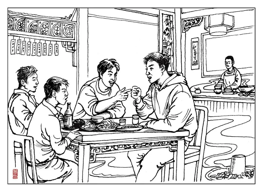 宋爷爷去世后,不亲已成人,和哥们弟兄聚会一次便喝一次。他天生能喝酒,加上喝的次数渐多,酒量自然练了出来。如果要写一部太原民间饮酒文化史,不亲能够占据一角,原因在于他曾经改革过太原酒令。过去喝酒和现在不同,二十世纪七八十年代的年轻人喝酒时兴酒令,一为热闹,二是喝酒行令总要喊叫,加上心急便会流汗,有助于快速解酒。当时走进太原任何一家饭店,都可以看到年轻人划拳喝酒的场面。那划拳划到激烈处,人们皆面色通红,青筋凸起,在喷出的酒气里,猜着对手的拳数,而杯中酒随着划拳声接连倒入肚皮,其豪放的拼酒气氛,足以令人的肾上腺素急遽飙升。