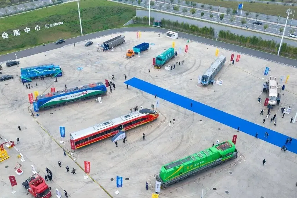 向绿,零碳排放节能高效绿色牵引。轨博会上,很多企业推出的新产品都突出体现一个“绿”字。时代新材展示的轨道交通车载储供氢系统,储氢量超过30公斤,一次加氢续航里程达200多公里,可满足城市公共交通的长距离运营需求。一列氢能城轨列车每日行驶300公里,每年可减少碳排放66吨,相当于植树6000棵的生态效益。